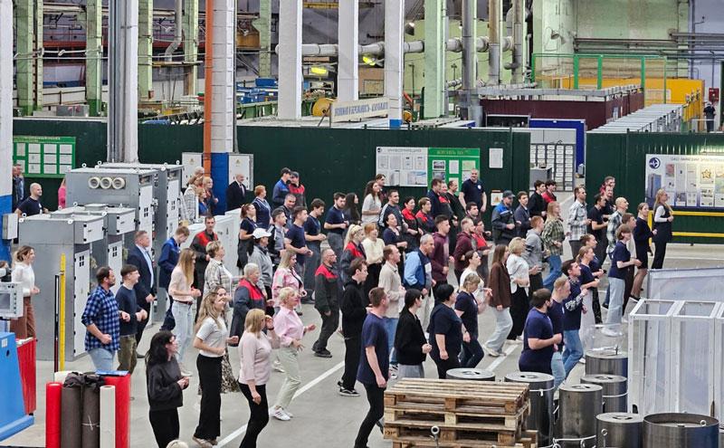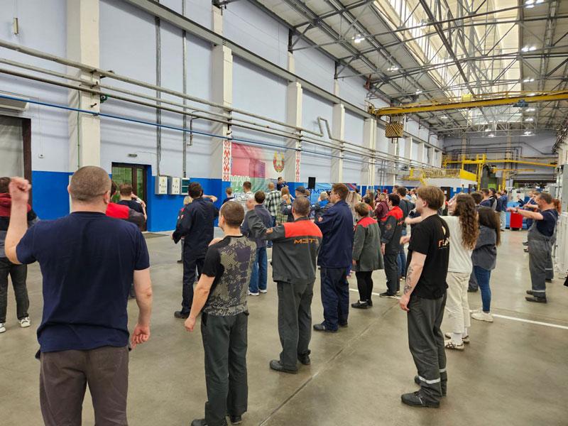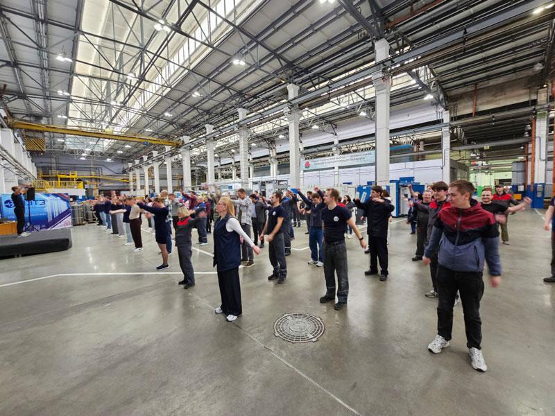 Производственная зарядка на ОАО "МЭТЗ ИМ. В.И.КОЗЛОВА" в Неделю молодежи и студенчества. Кроме зарядки мы разыграли мягких Вольтиков путем случайной лотереи! Заряд энергии - с МЭТЗ