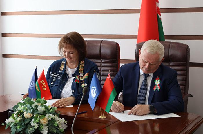Соглашение подписали: Генеральный директор ОАО «МЭТЗ ИМ. В.И. КОЗЛОВА» Радевич Александр Михайлович и Командир Республиканского штаба студенческих отрядов Шаховская Надежда Александровна