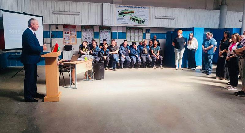 Руководство администрации Партизанского района г.Минска встретились с трудовыми коллективами: Поляков Николай Александрович, глава администрации, посетил трудовой коллектив Троллейбусного парка №5.