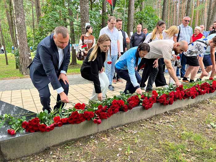 Представители Партизанского района сегодня приняли участие в республиканском велопробеге, посвященном 80-летию Победы в Великой Отечественной войне. Участники велопробега почтили память павших героев, возложив цветы в "Тростенце" урочище "Благовщина".