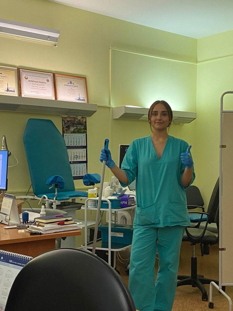 В кадре студенческий отряд в области здравоохранения «Сокол» имени Трижды Героя Советского Союза Мичурина Ивана Никитовича. Учащиеся Минского государственного медицинского колледжа трудятся в качестве санитаров. Такая практика позволит лучше узнать специфику будущей профессии. Принимающая организация: УЗ «Городская гинекологическая больница»