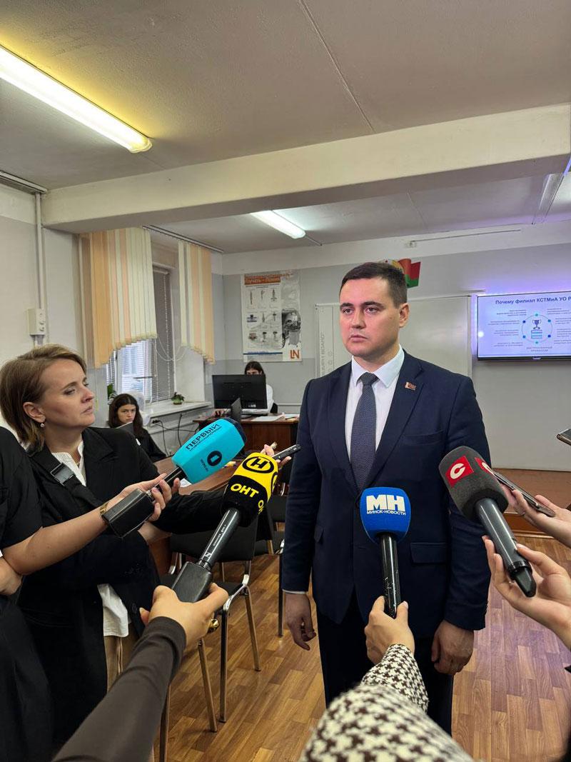Директор колледжа Артём Евгеньевич Рыбак подробно рассказал министру о востребованных специальностях, оснащении учебных мастерских и лабораторий, а также о сотрудничестве с предприятиями, где учашиеся проходят практику и в дальнейшем трудоустраиваются.