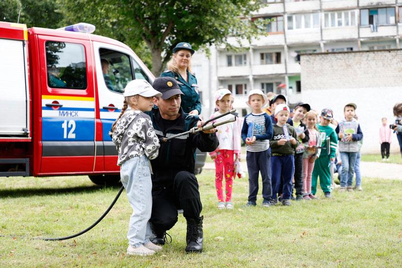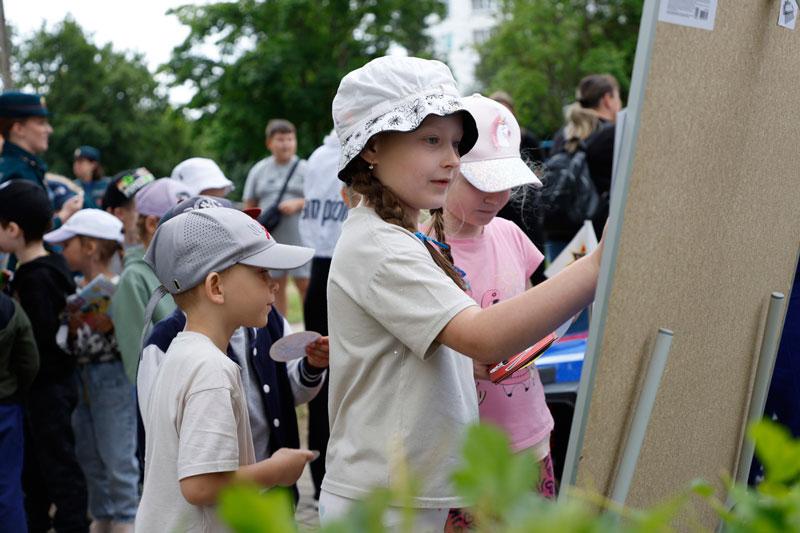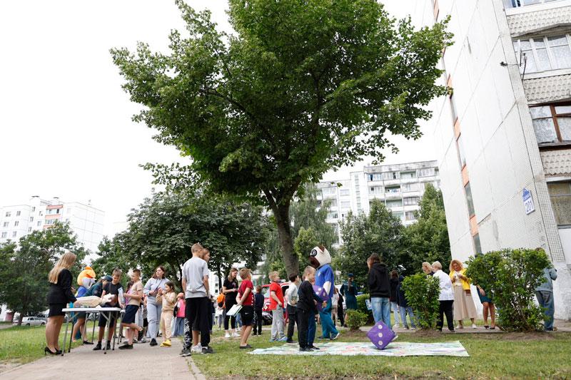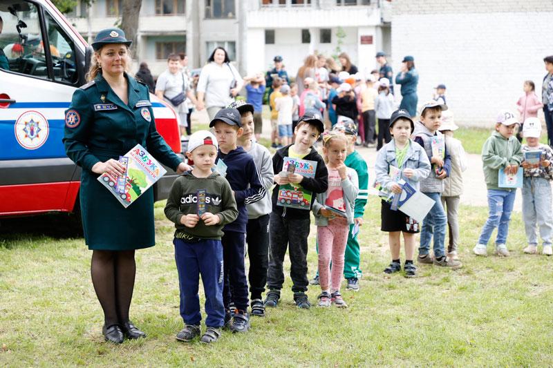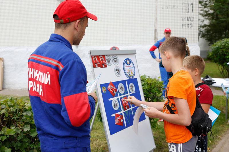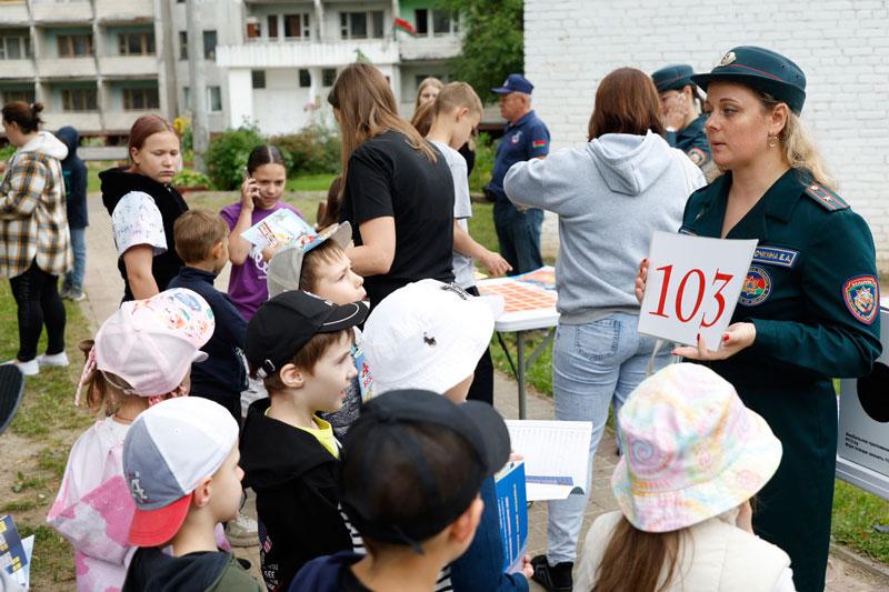 Но на этом сюрпризы для детей, проживающих в данном и соседних общежитиях, не закончились. На территории детской площадки был развернут настоящий праздник в рамках акции «Безопасные каникулы» с участием представителей ОСВОД и БДПО. Пожарные крестики-нолики, напольная игра-ходилка, коробочка с опасными и безопасными предметами, стрельба по мячам водой – далеко не все активности, в которых можно было принять участие.