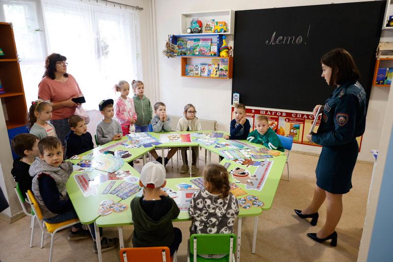 Сегодня впервые в новой имиджевой комнате прошло обучающее занятие для мальчишек и девчонок из детского сада №257 города Минска. Работники МЧС напомнили ребятам о «5 шагах безопасности», «правилах поведения на водоемах» и «номерах экстренных служб».