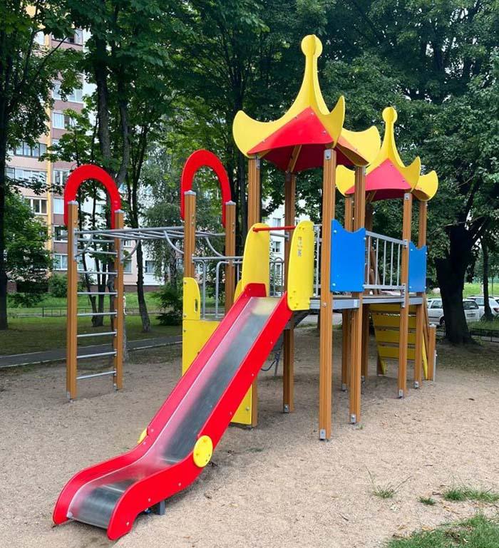 Современная детская площадка: Радость для самых маленьких жителей! Теперь у них есть безопасное и интересное место для игр и развлечений.