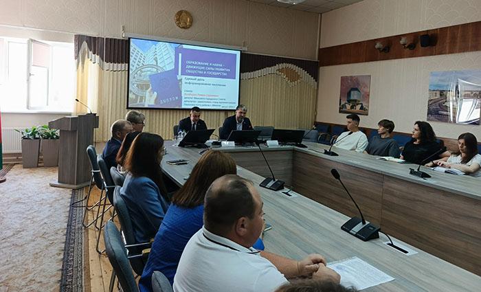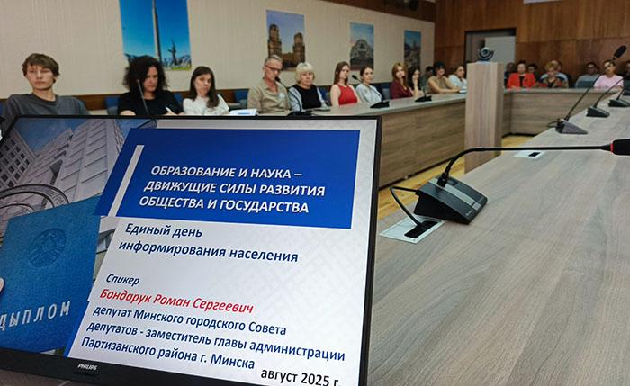 В филиале КСТМиА УО РИПО прошел Единый день информирования на тему: «Образование и наука – движущие силы общества и государства. Спикером встречи стал депутат городского Совета депутатов, заместитель главы администрации Партизанского района г. Минска Роман Сергеевич Бондарук.