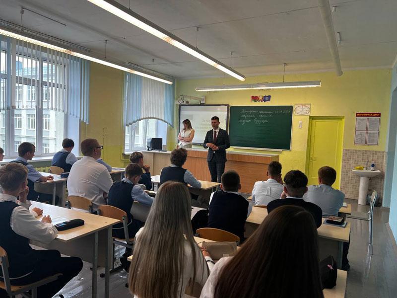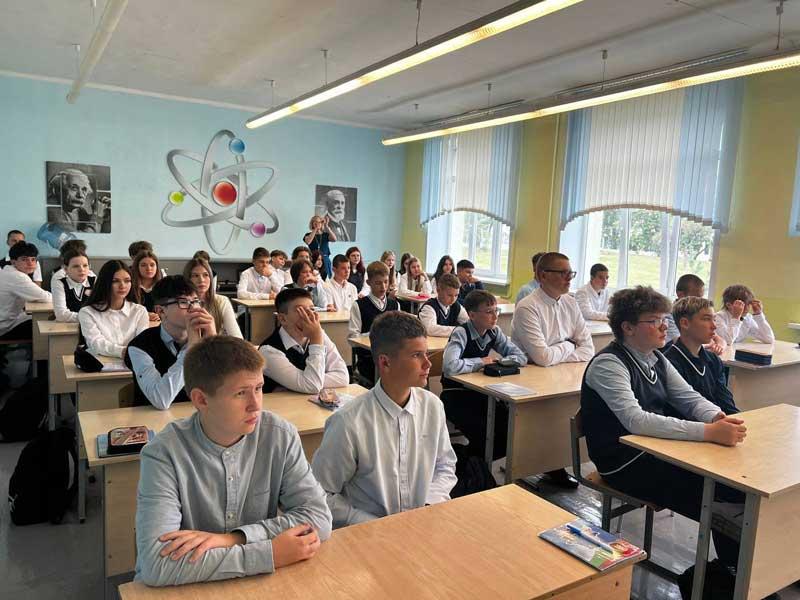 Тема урока: «Эстафета поколений: сохраняя прошлое, создаём будущее». На уроке школьники обсудили важнейшие события из истории Беларуси, достижения суверенной страны, а также возможности для реализации молодежи.