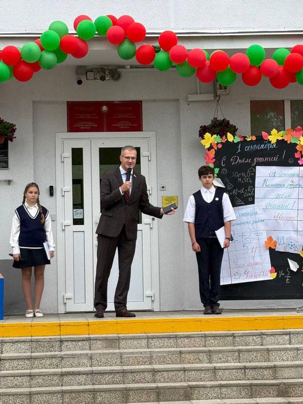 Депутат Палаты представителей Национального собрания Вадим Гигин посетил линейку в средней школе №69. Он пожелал дружному коллективу педагогов и учащихся сохранять высокую планку и стремиться к новым победам в олимпиадах и конкурсах. Родителям депутат призвал активно поддерживать своих детей на пути к знаниям и успехам.