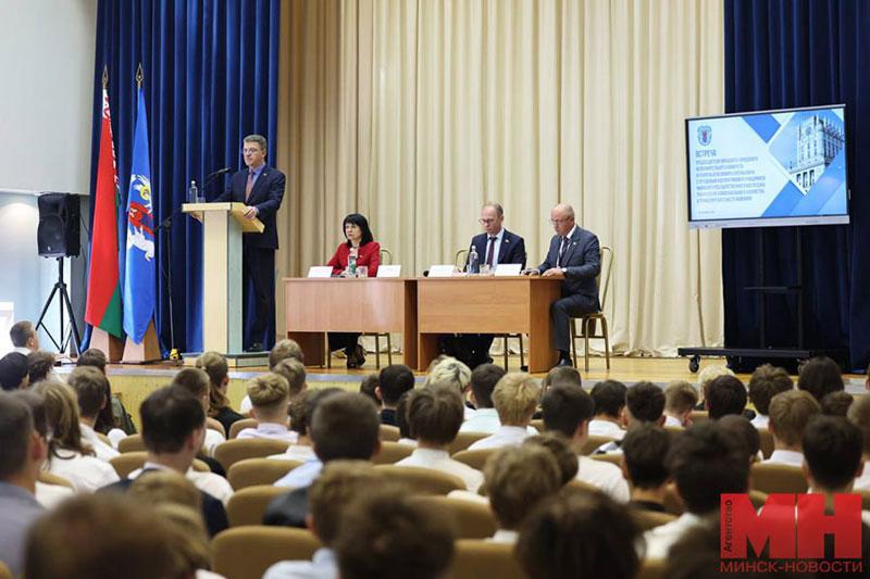 Председатель Мингорисполкома встретился с педагогами и учащимися Минского государственного колледжа технологий коммунального хозяйства и транспортного обслуживания.