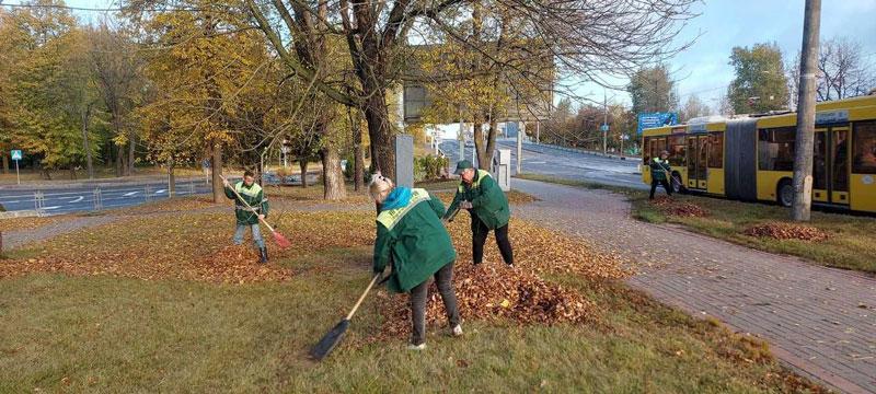 Cотрудники УП "Зеленстрой Партизанского района г.Минска" вместе с неравнодушными жителями ударно потрудились, очищая от опавшей листвы сквер "Содружество", сквер по ул. Долгобродской и бульвар Пулихова.
