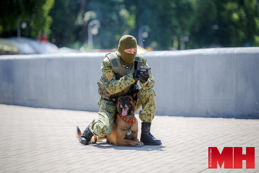 Свое мастерство показали пограничники кинологи, приехавшие в Минск вместе с четвероногими напарниками из кинологического центра Госпогранкомитета в Сморгони. Собаки-пограничники безупречно находили взрывчатые и другие, запрещенные к провозу через границу вещества, без страха бросались на условных нарушителей границы, задерживали их и валили на землю.