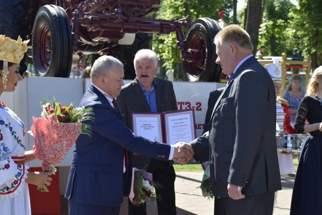 Начался праздник с награждения передовиков производства знаком «За трудовое отличие». Церемония проходила на площадке возле легендарного трактора МТЗ-2 в сквере «70 лет МТЗ».