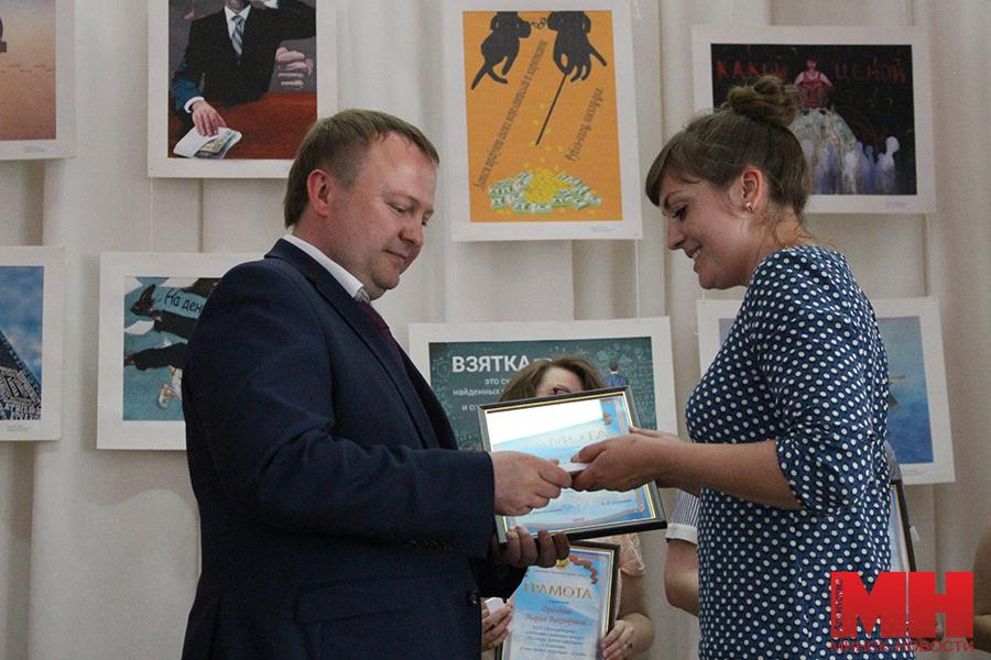 Корзо Дмитрий Викторович, филиал БНТУ «Минский государственный машиностроительный колледж», участнику районного конкурса «Молодежь против коррупции» в номинации «Наглядная агитация против коррупции»;