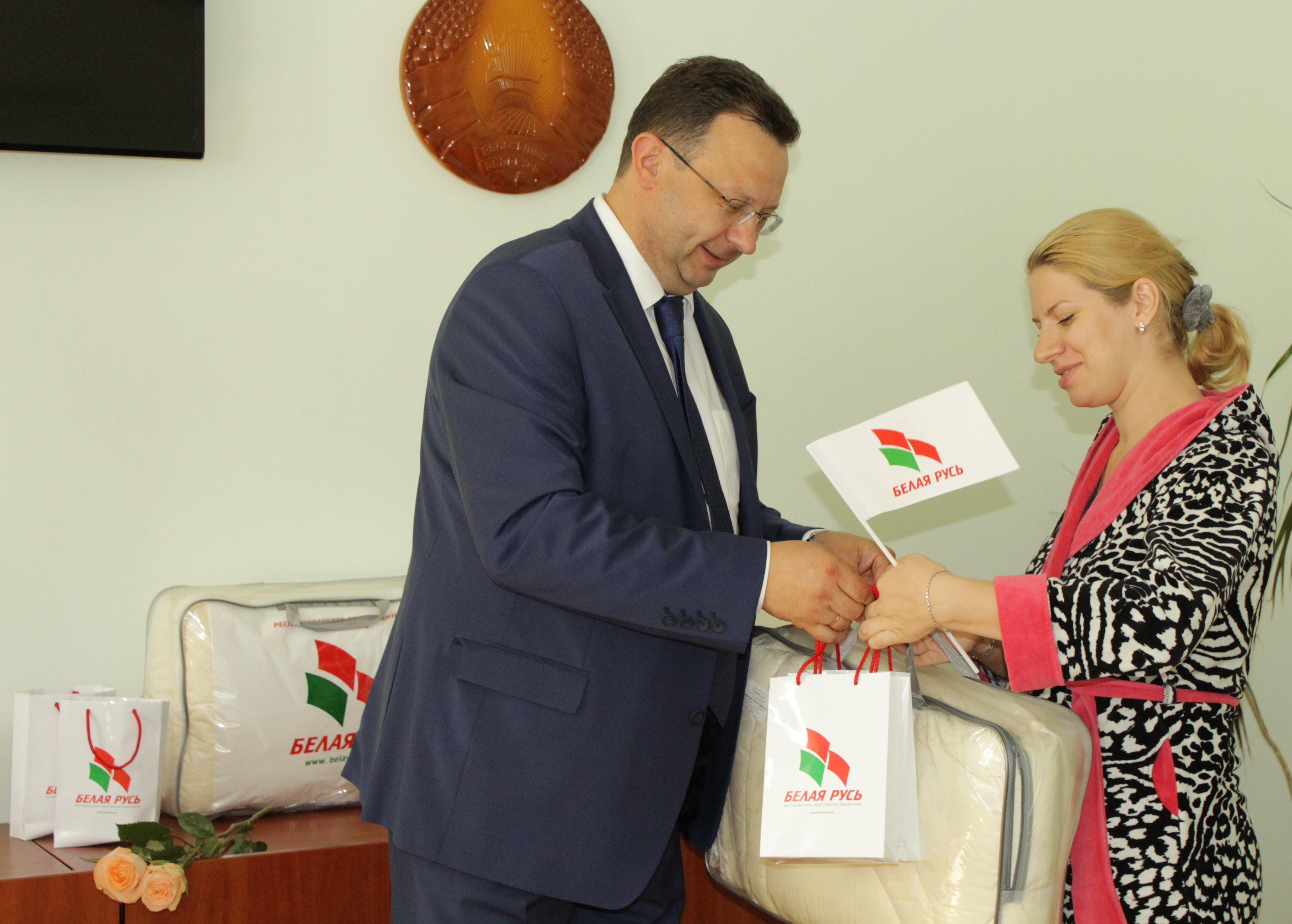 Гости вручили мамам подарки, предоставленные Минской городской организацией РОО «Белая Русь», Партизанской и Заводской районными г. Минска организациями РОО «Белая Русь», администрацией УЗ «6 – я городская клиническая больница». Организовали и провели мероприятие: Партизанская и Заводская районные г. Минска организации РОО «Белая Русь».