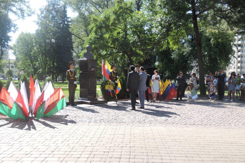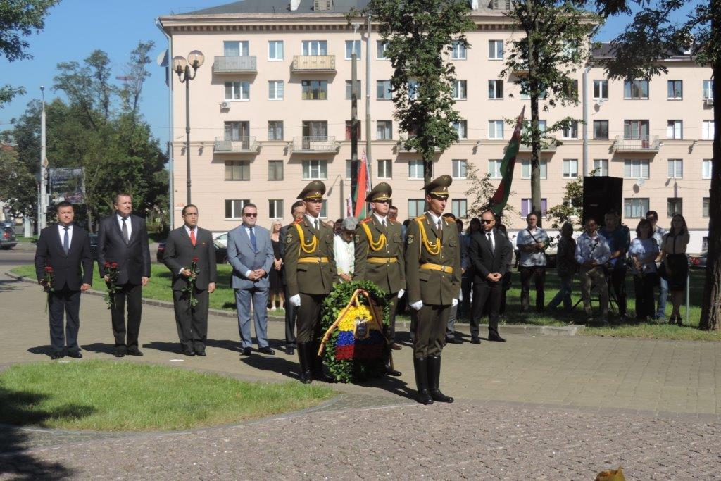 В сквере Симона Боливара на пересечении улиц Захорова и улицы Первомайская 8 августа по случаю 209-годовщины провозглашения независимости Республики Эквадор состоялась торжественная церемония возложения венков к памятнику генералу, национальному герою Венесуэлы, руководителю освободительной войны испанских колоний в Латинской Америке – Симону Боливару.