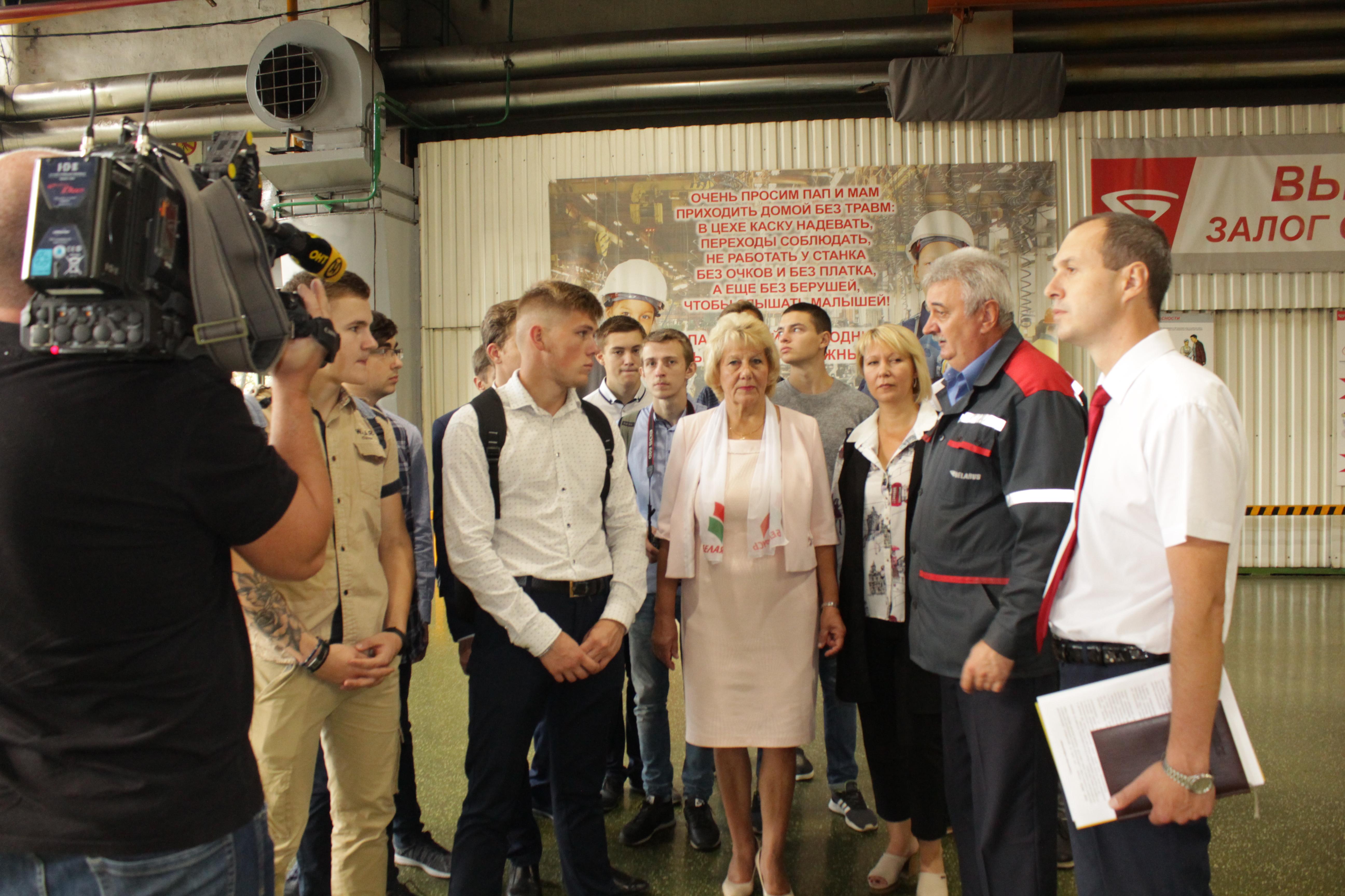 Вместе с ребятами предприятие посетили: Александр Викторович Шатько – заместитель председателя Республиканского общественного объединения «Белая Русь»; Артём Евгеньевич Рыбак – директор филиала «Колледж современных технологий в машиностроении и автосервисе» УО «РИПО»; Зинаида Ивановна Козловская – председатель Партизанской районной г. Минска организации РОО «Белая Русь»; Светлана Александровна Купцова – председатель Партизанского районного объединения первичных профсоюзных организаций; Роман Викторович Никонов – депутат Минского городского Совета депутатов 28 созыва.