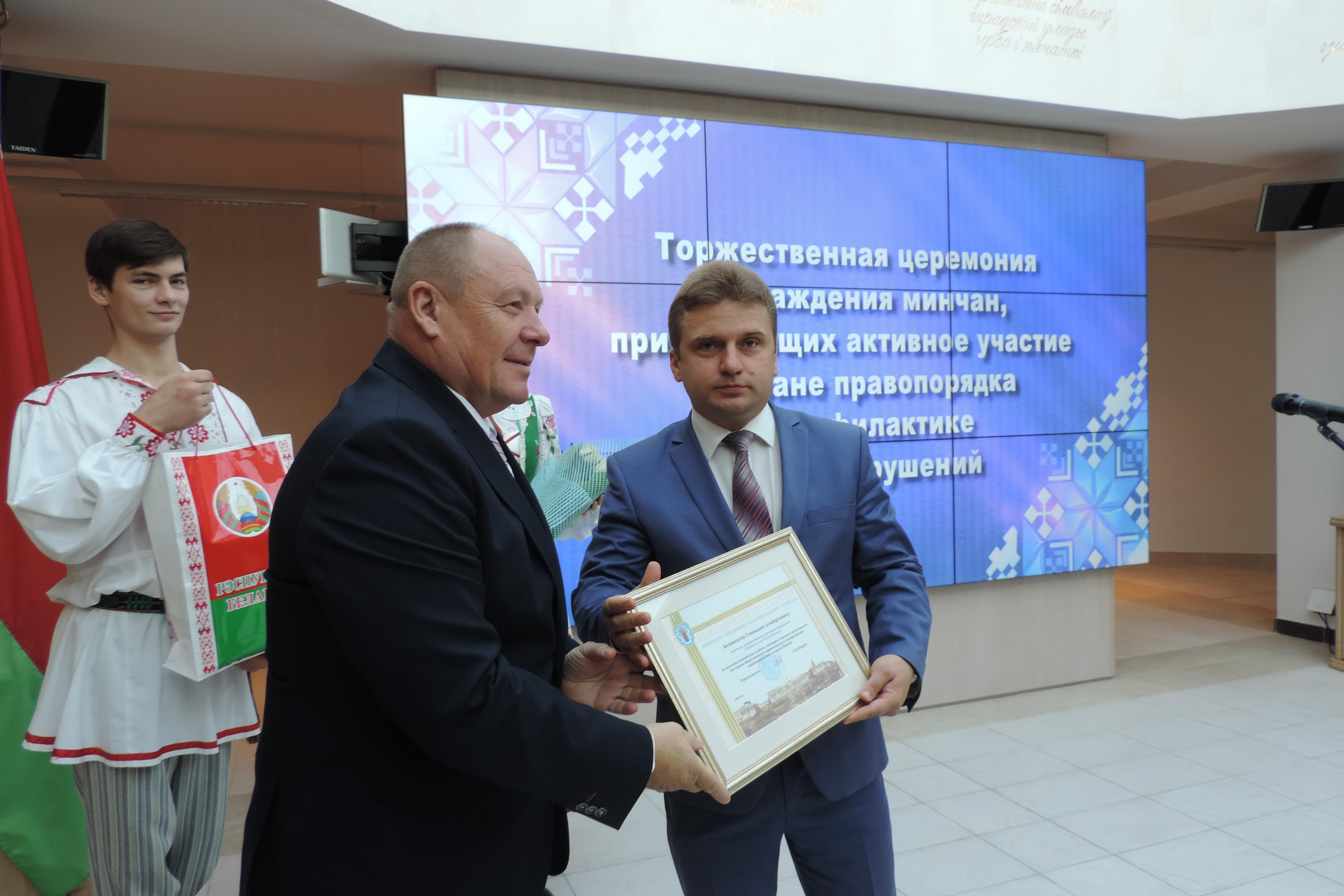 Белявский Геннадий Альбертович, директор ГУО «Средняя школа № 223 г.Минска», председатель совета ОПОП № 65 награжден Благодарностью председателя Мингорисполкома;