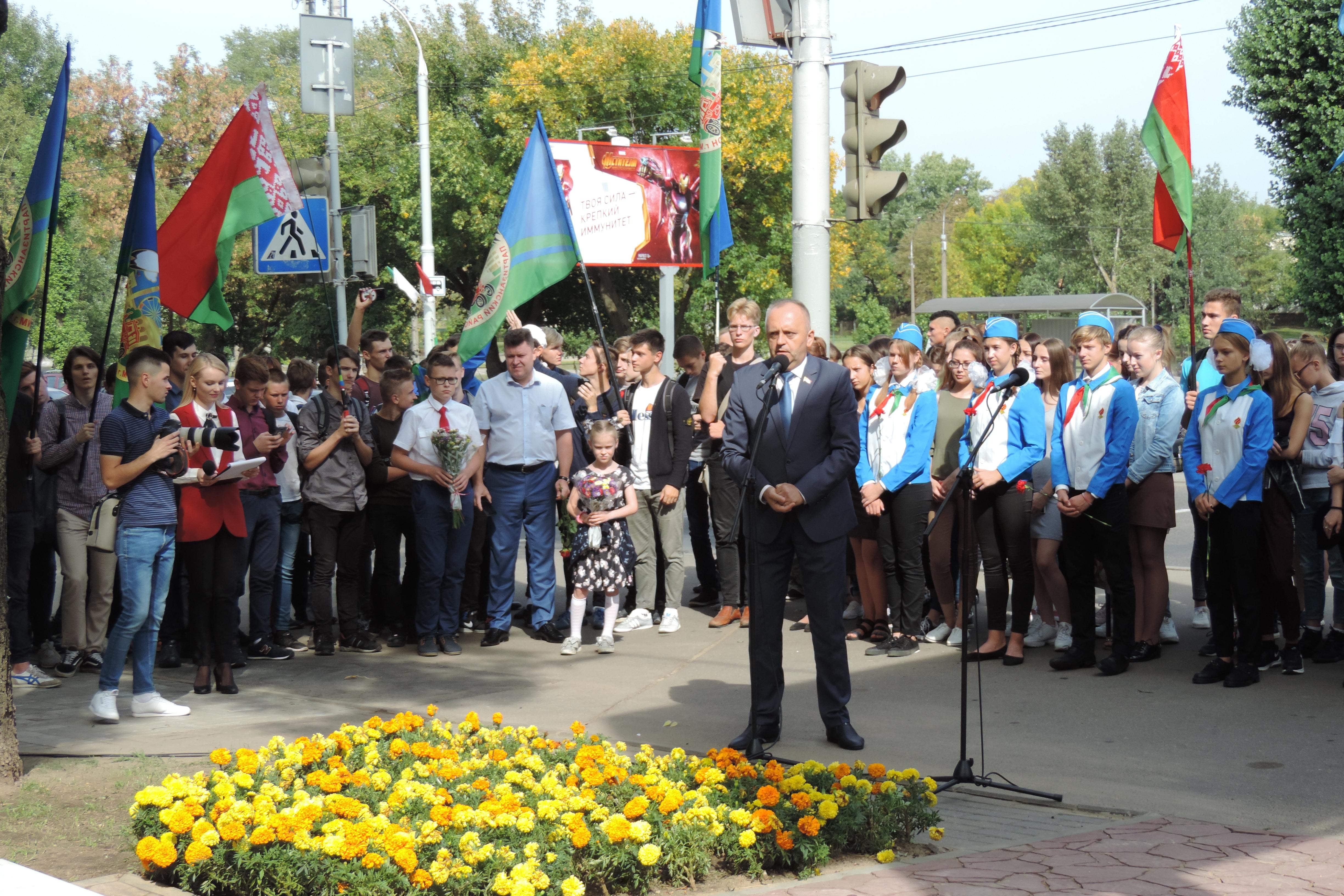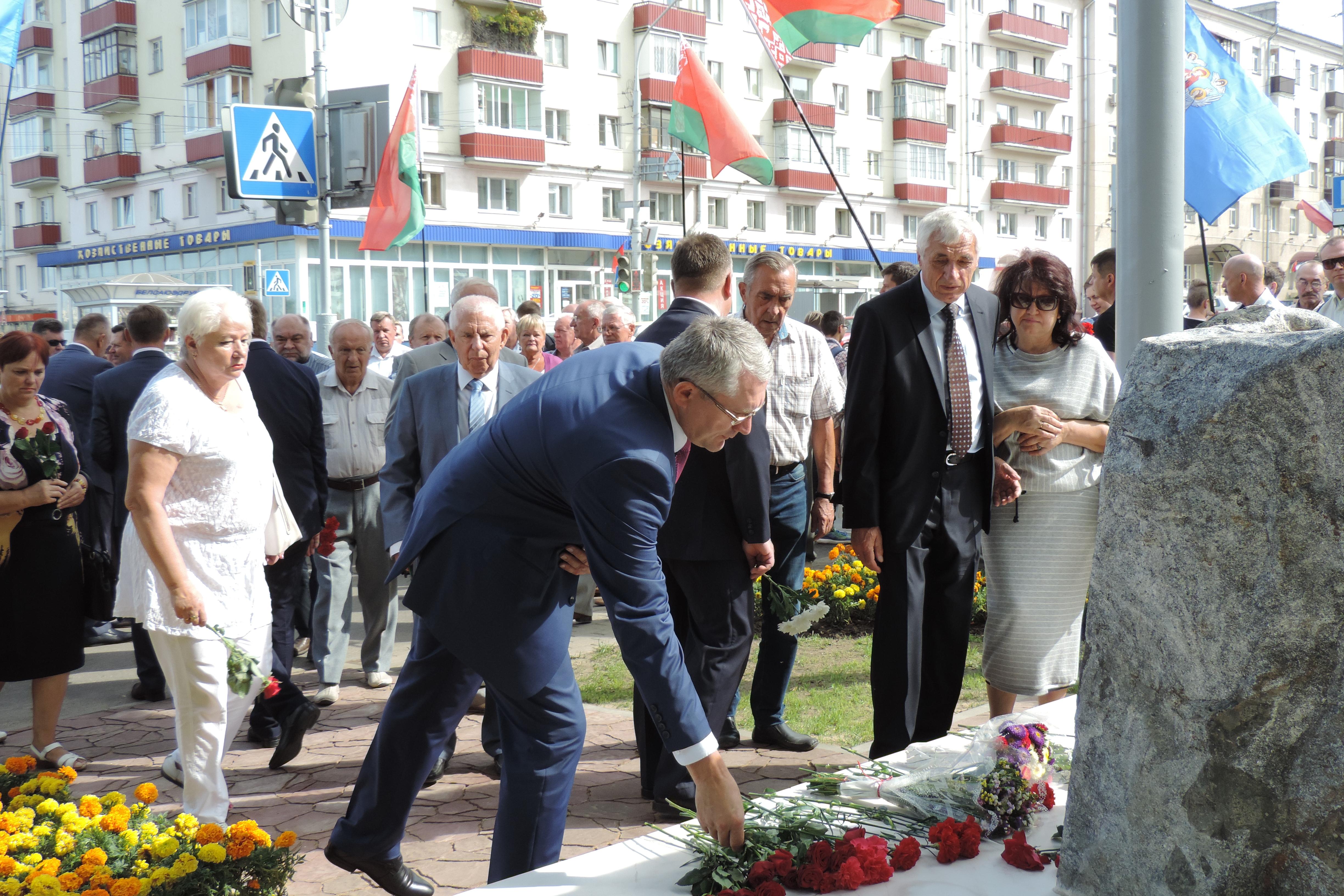 С поздравительным словом выступили: председатель Минского городского Совета депутатов Василий Васильевич Панасюк, начальник управления Европы Министерства иностранных дел Республики Беларусь Евгений Семенович Воробьев, глава администрации Партизанского района г.Минска Денис Васильевич Овсяников. Со словами благодарности и признательности выступила жена Александра Михайловича Анна Федоровна Герасименко.