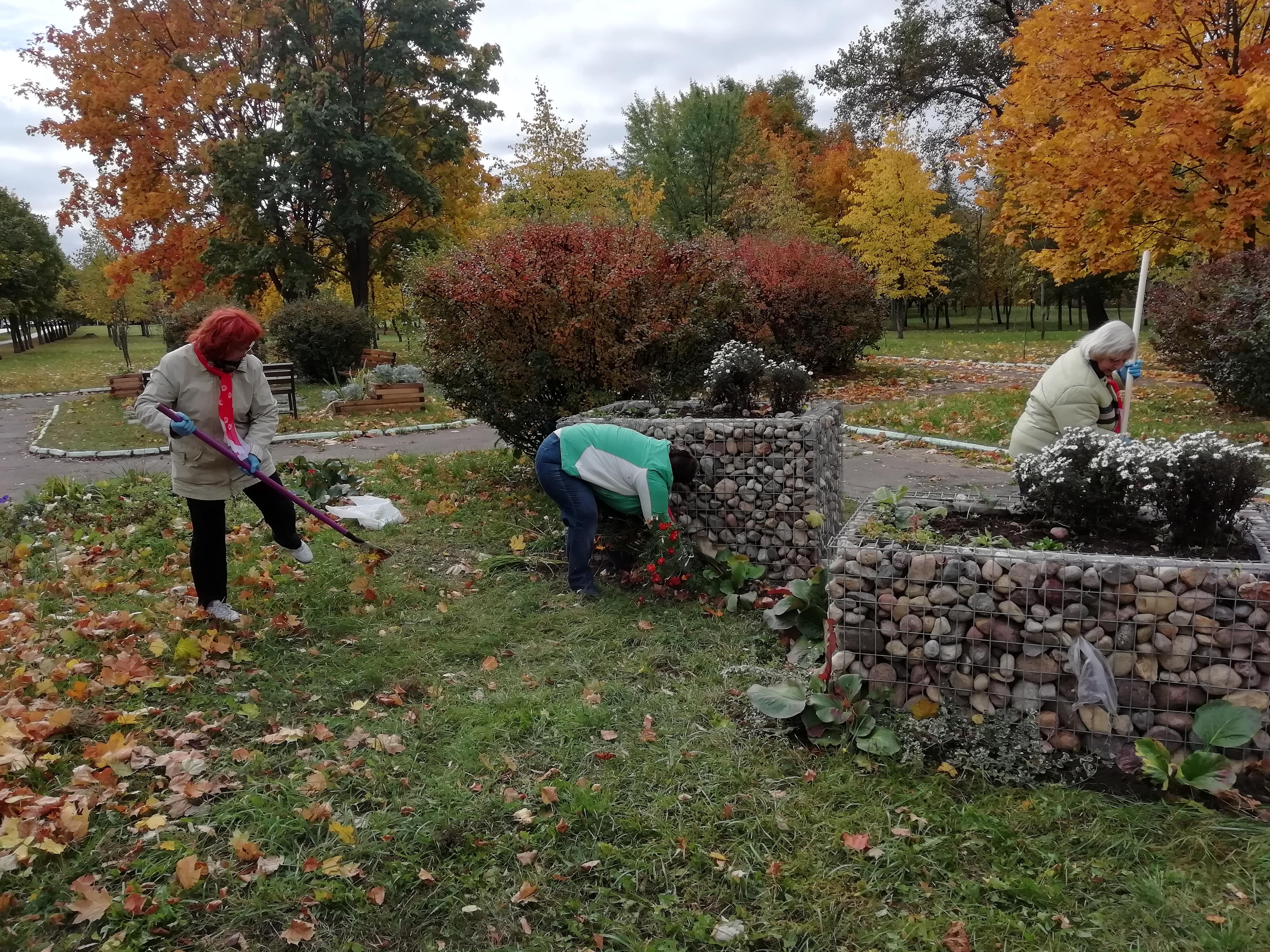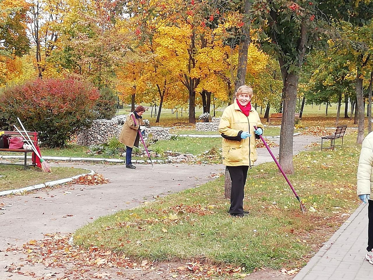 Месячник по уборке, благоустройству родного города Минска стартовал с 1 октября. Не остались в стороне и активные граждане пожилого возраста. Волонтерская группа Партизанской районной организации Белорусского Общества Красного Креста «Родник добра» навела порядок на территории Терапевтического парка.