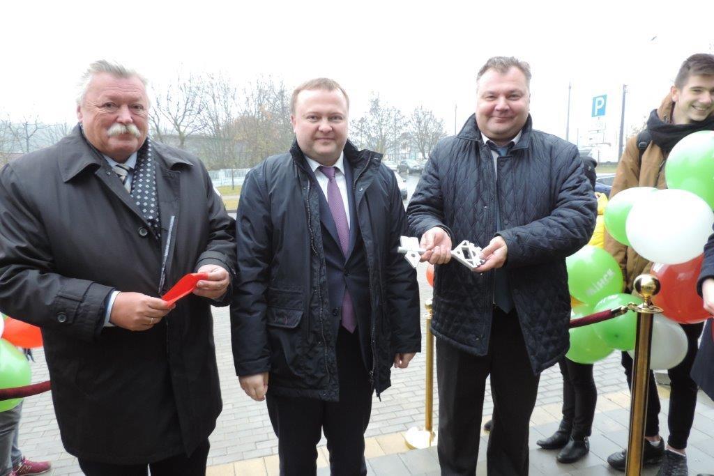 Символическую красную ленточку вместе с главой перерезали директор УКС «Восток» Сергей Перцев и директор ООО «Минский городской технопарк» Владимир Давидович.