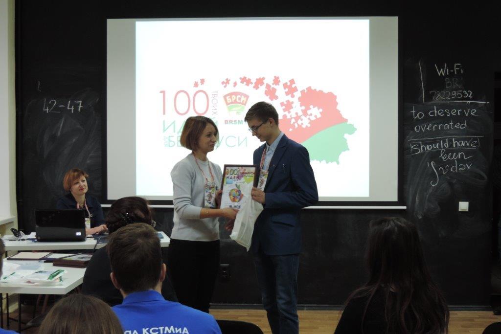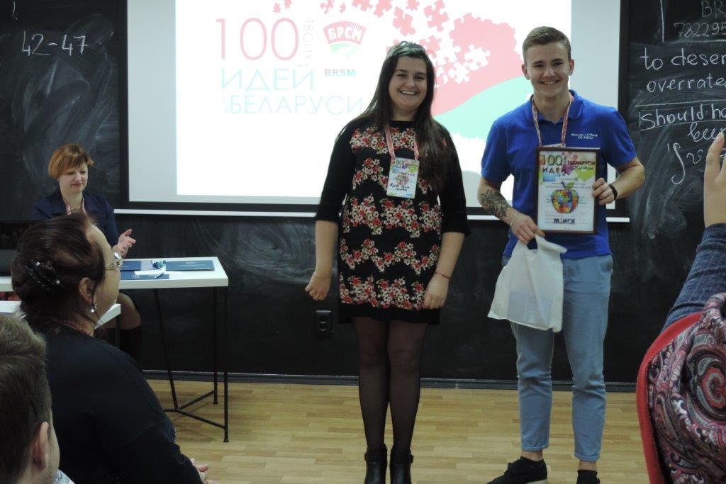 «100 идей для Беларуси» - республиканский проект, существующий с 2011 года. Организатором является общественное объединение «Белорусский республиканский союз молодежи». Конкурс направлен на поиск лучших проектов в различных сферах, которые могли бы быть полезны для общества.