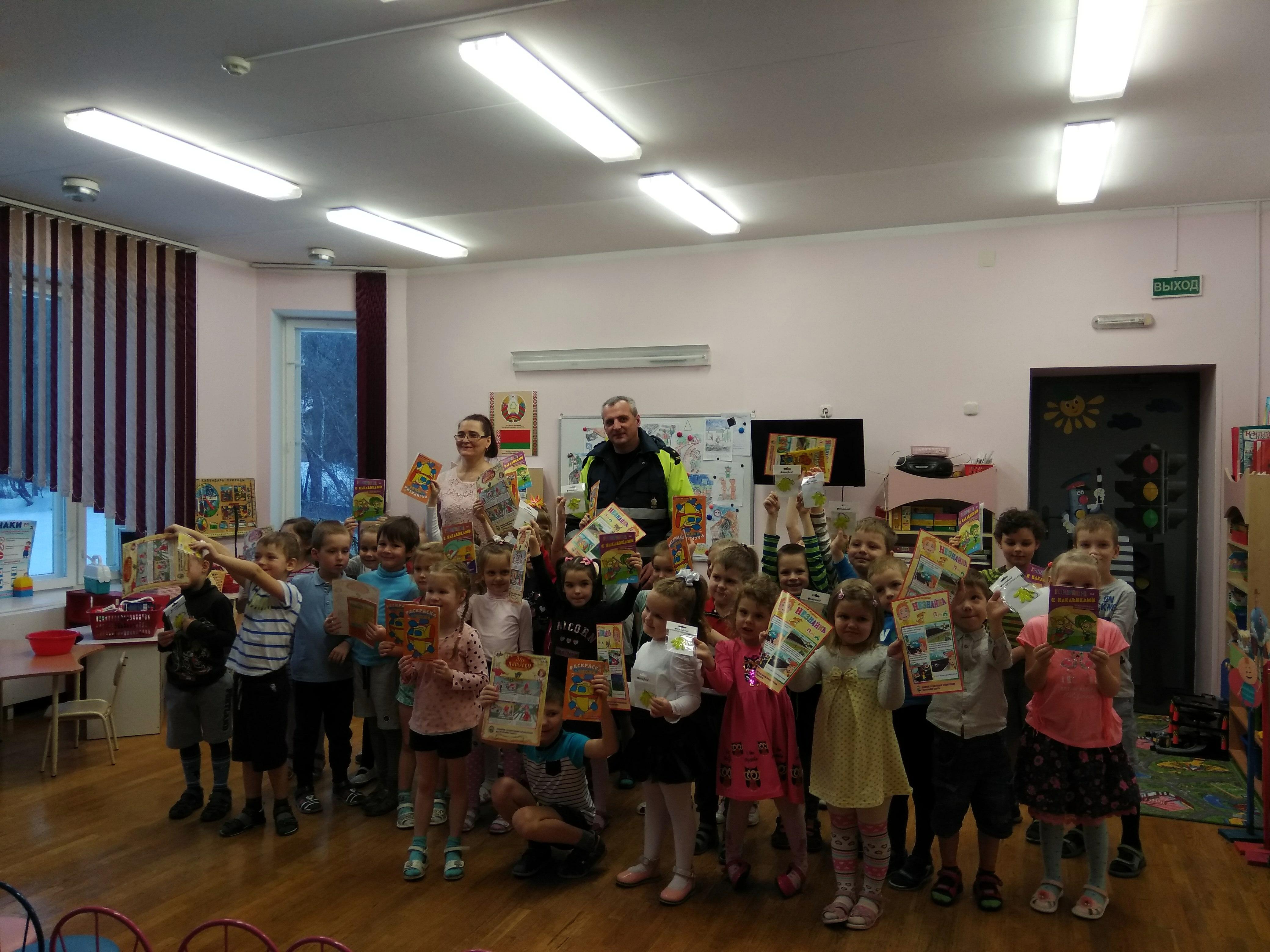 Сотрудники напомнили воспитанникам дошкольного учреждения о необходимости соблюдения правил дорожного движения, рассказали о светофоре, помогли изучить дорожные знаки для пешеходов, объяснили как себя вести в общественном транспорте.