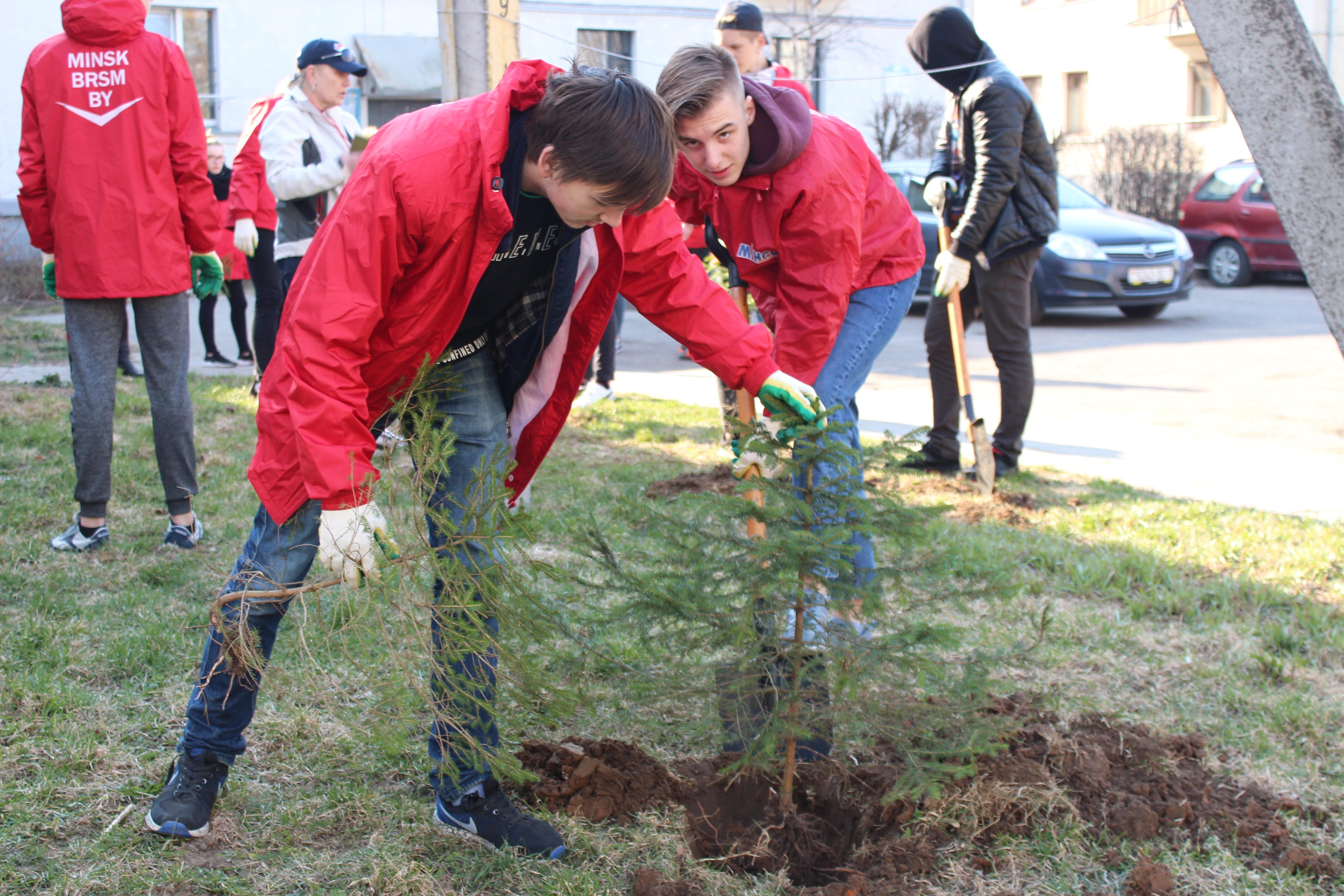 Активисты ОО «БРСМ» совместно с жилищно-коммунальными службами района и жителями столицы озеленили и навели порядок в дворах по улице Олега Кошевого и по переулку Ученическому в рамках городского проекта по благоустройству территории «Мой родны кут».
