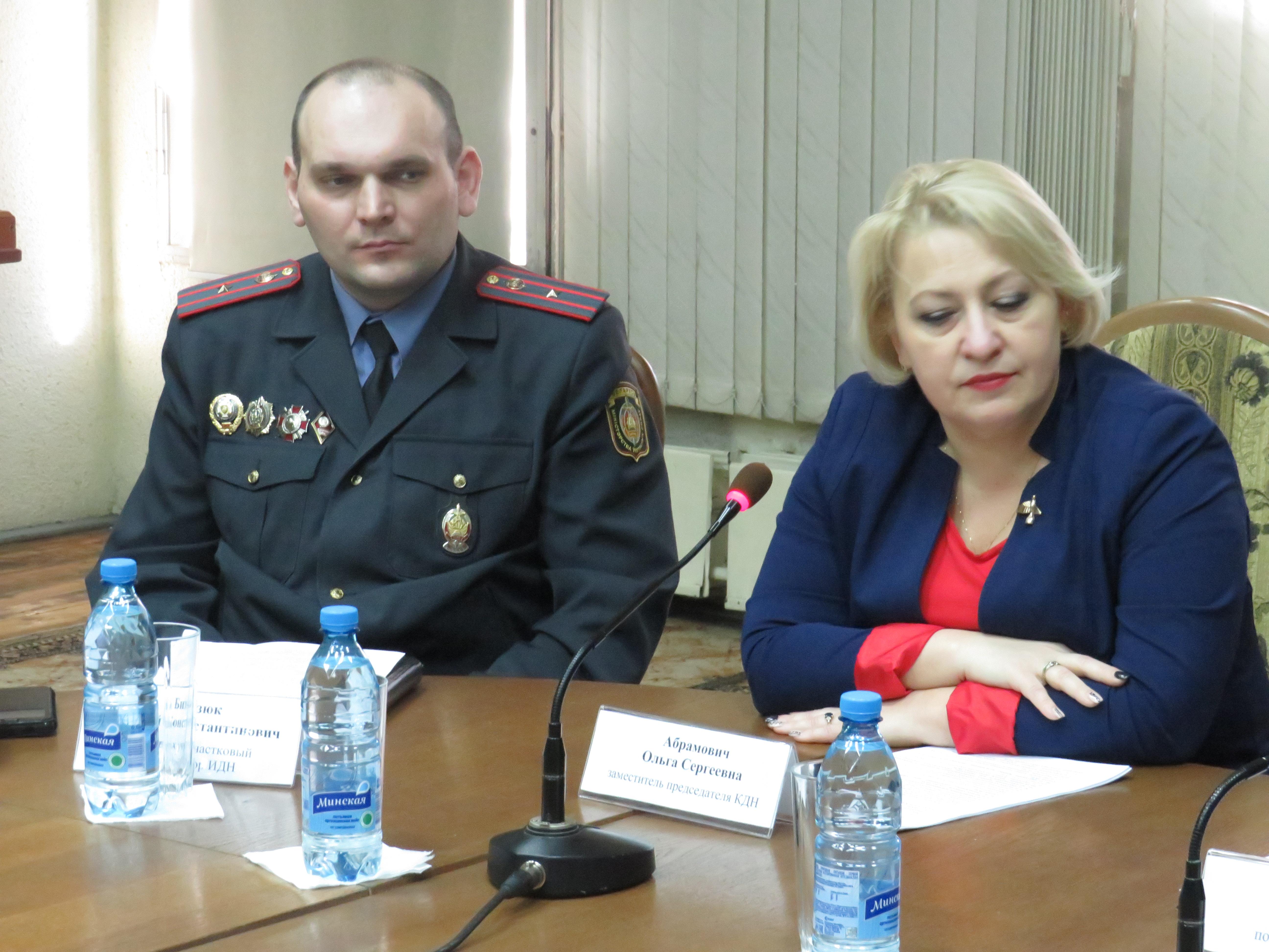 Перед учащимися выступили Абрамович Ольга Сергеевна – заместитель председателя комиссии по делам несовершеннолетних Партизанского района, Пономарева Елена Юрьевна – помощник прокурора, Бизюк Сергей Константинович – старший участковый инспектор ИДН, Шавейко Алла Сергеевна – врач-нарколог.