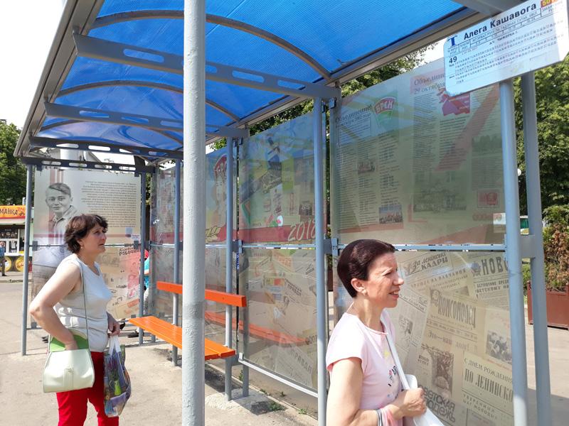 Один из недавних совместных проектов – стилизация остановочного павильона на ул. Кошевого. Теперь пассажиры, ожидая транспорт, могут узнать, чьим именем названа улица. Макеты разработали ребята из БРСМ, оплатил их КОТОС.