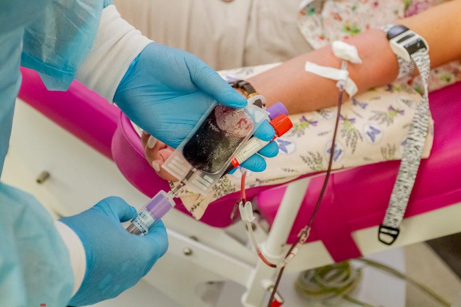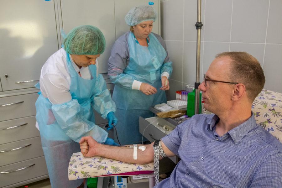 Заполнив необходимые документы и пройдя медицинское обследование, участники акции стали сдавать кровь.