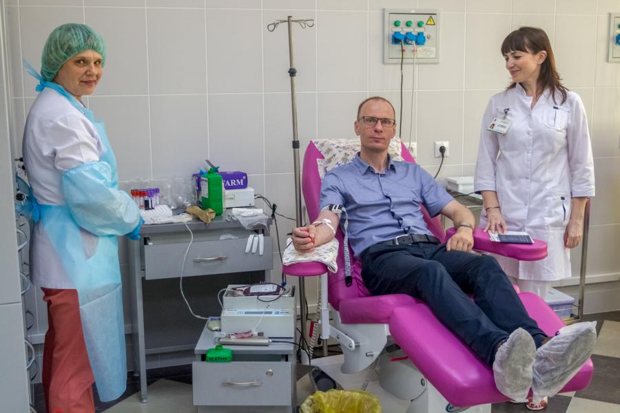 Его первый заместитель Денис Капитан кровь сдавал во второй раз и, по его словам, тоже не последний. И у него тоже редкая группа крови — вторая отрицательная.