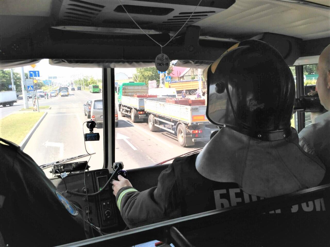 Автомобиль МЧС с включенным проблесковым маячком двигался по улицам города. Стоит отметить, что за время проведения рейда был привлечен один водитель.