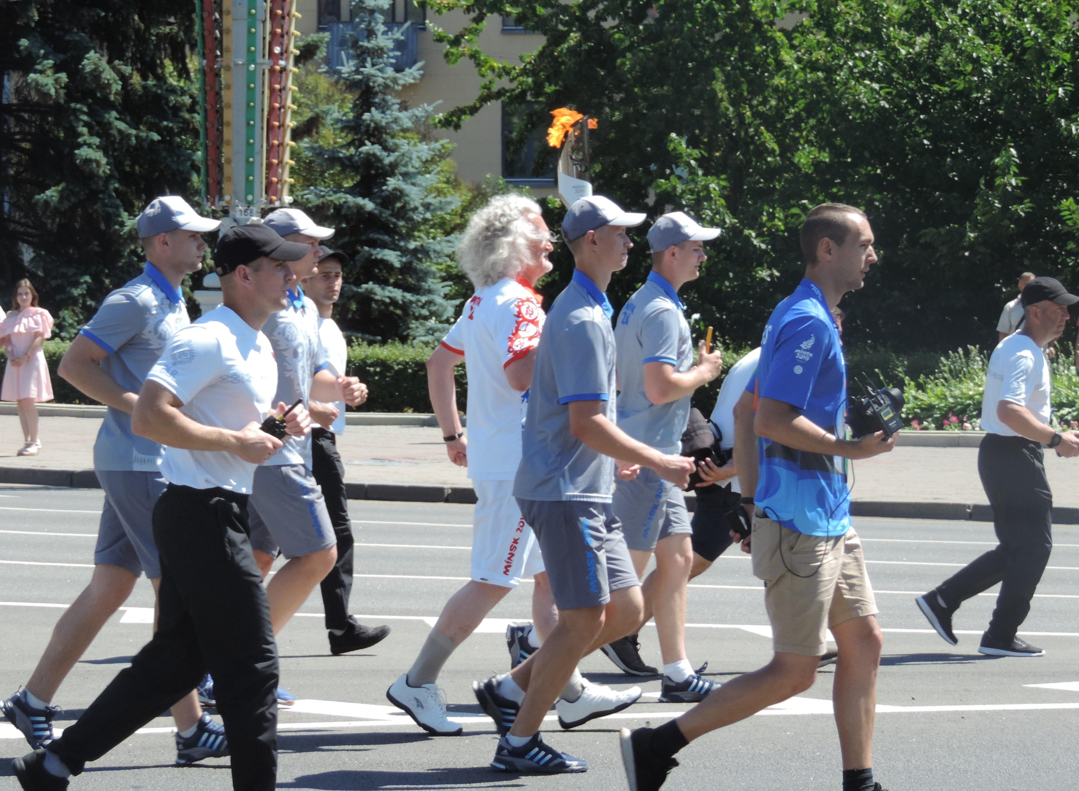 Эстафета «Пламя мира» продолжает свой путь по Минску. 18 июня ее маршрут прошел по пр. Независимости. На площади Победы факелоносцев из числа известных спортсменов, артистов, медийных персон встречали представители студенческих и трудовых коллективов Партизанского района. 19 июня встречать II Европейские игры будет одно из крупнейших предприятий не только города Минска, но и Республики Беларусь - ОАО "Минский тракторный завод".
