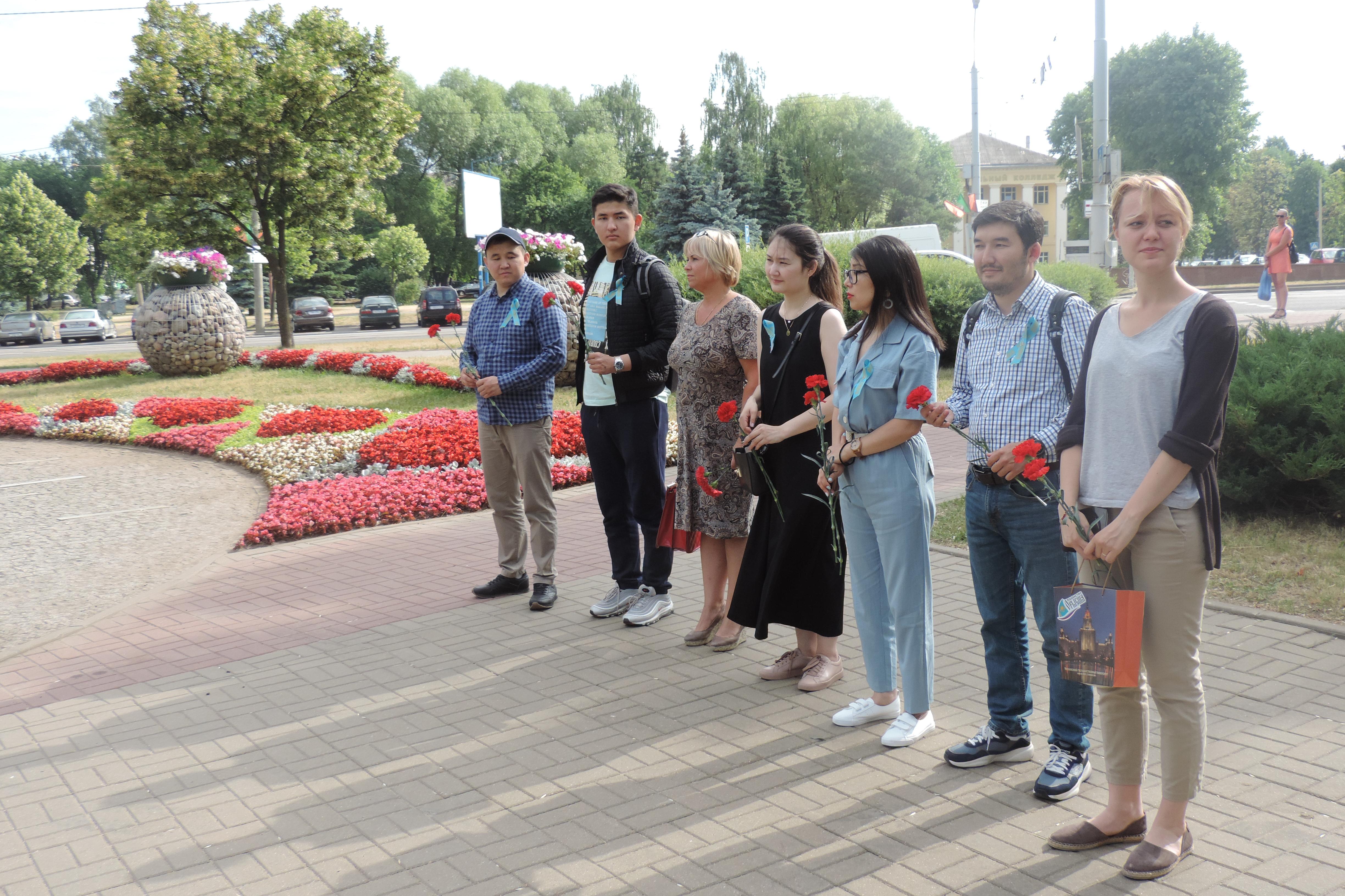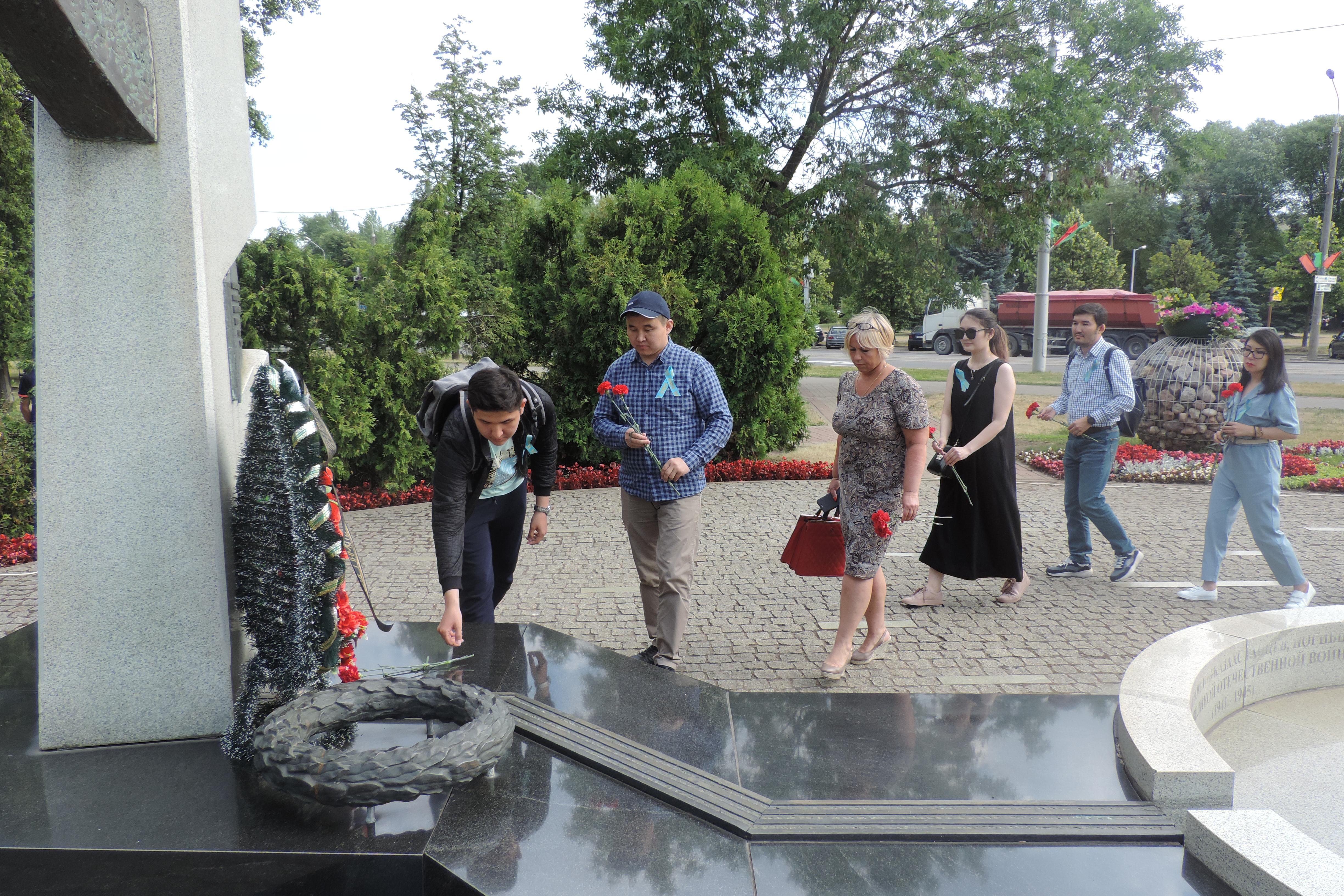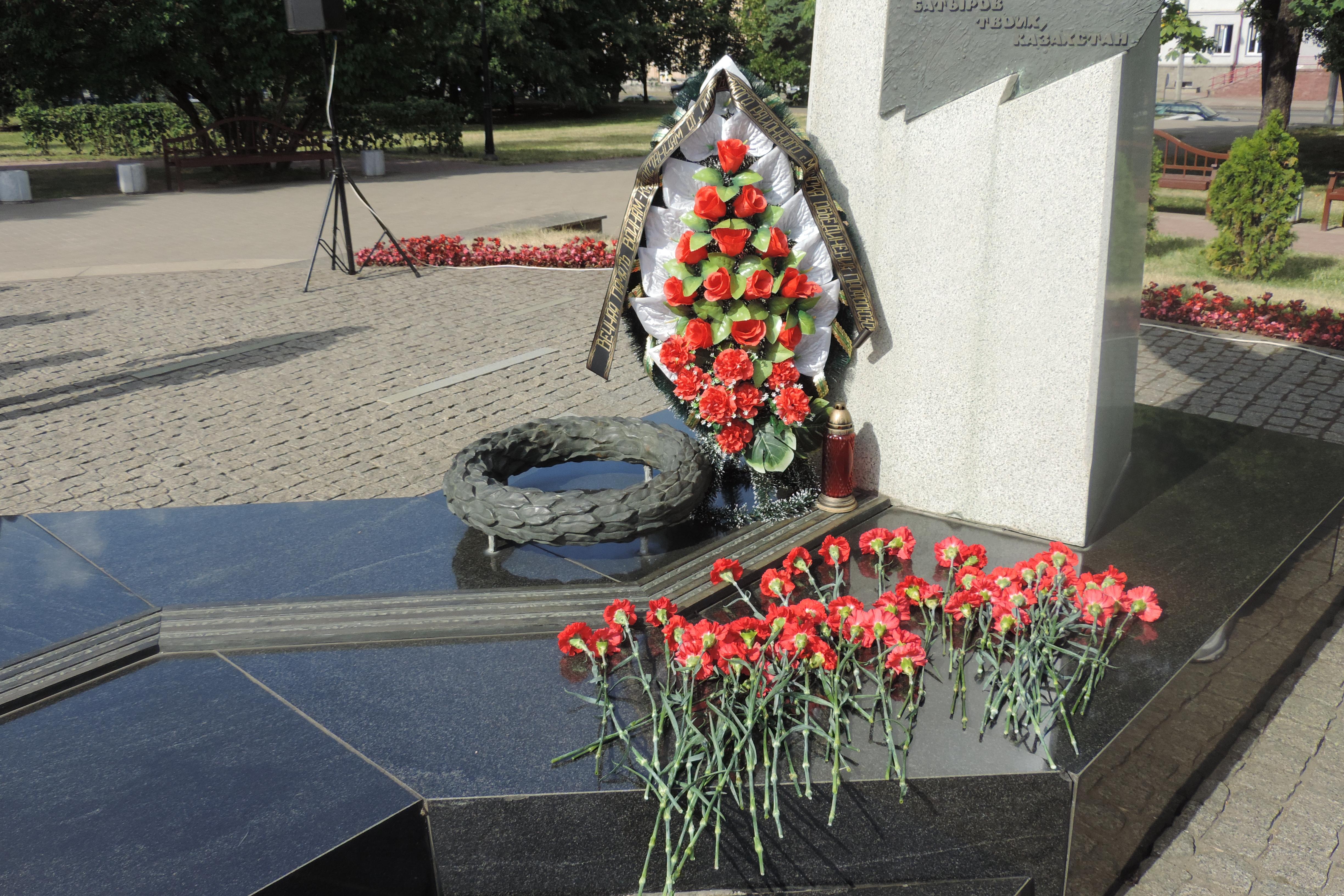 В рамках пресс-тура казахстанских журналистов и блогеров в Республике Беларусь в сквере «Содружество» возле Стеллы памяти воинов-казахстанцев, погибших в годы Великой Отечественной войны на белорусской земле, состоялась торжественная церемония возложения цветов. Мероприятие было приурочено 78-летию со дня начала Великой Отечественной войны и 75-летию освобождения Беларуси от немецко-фашистских захватчиков.