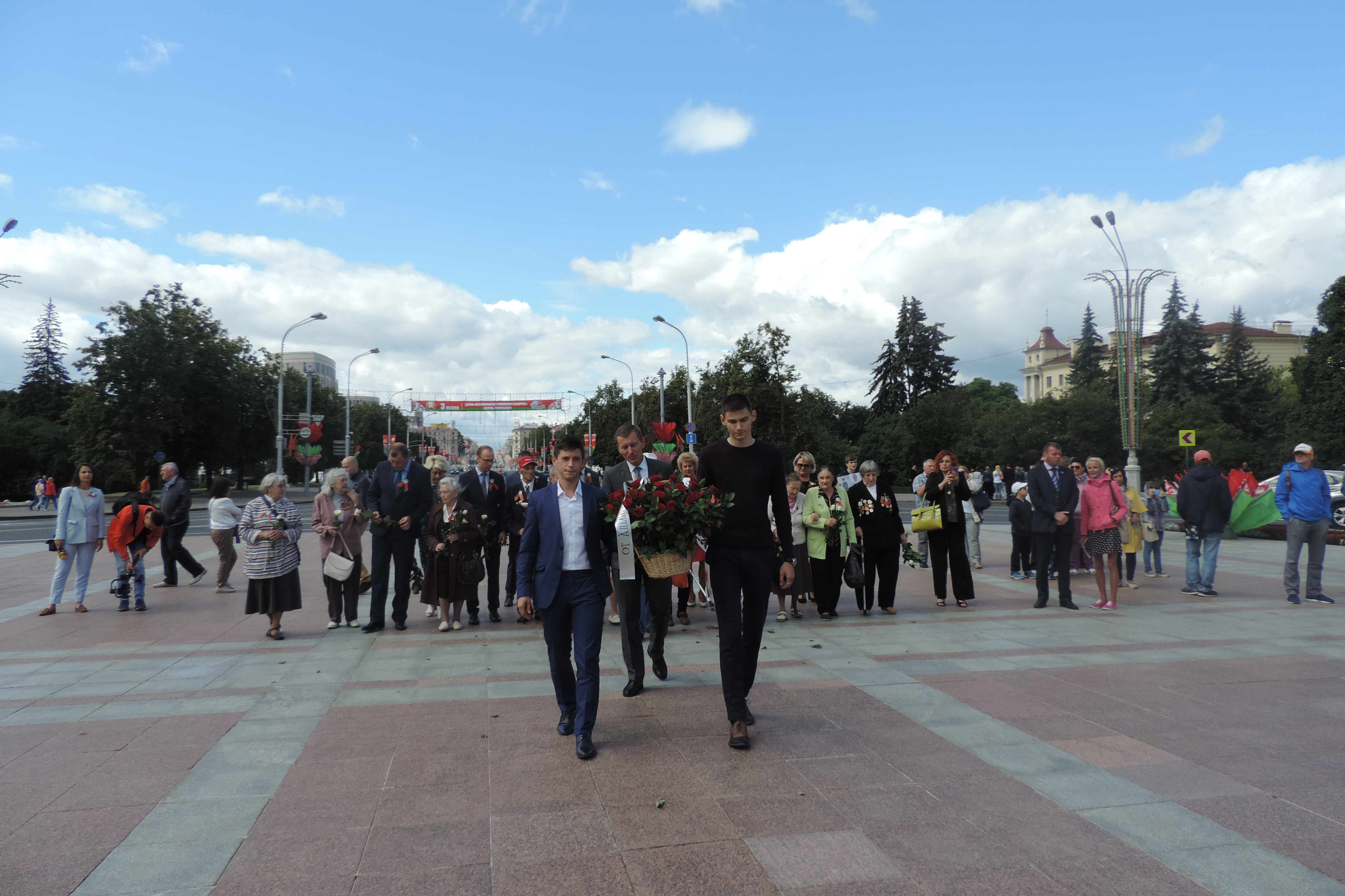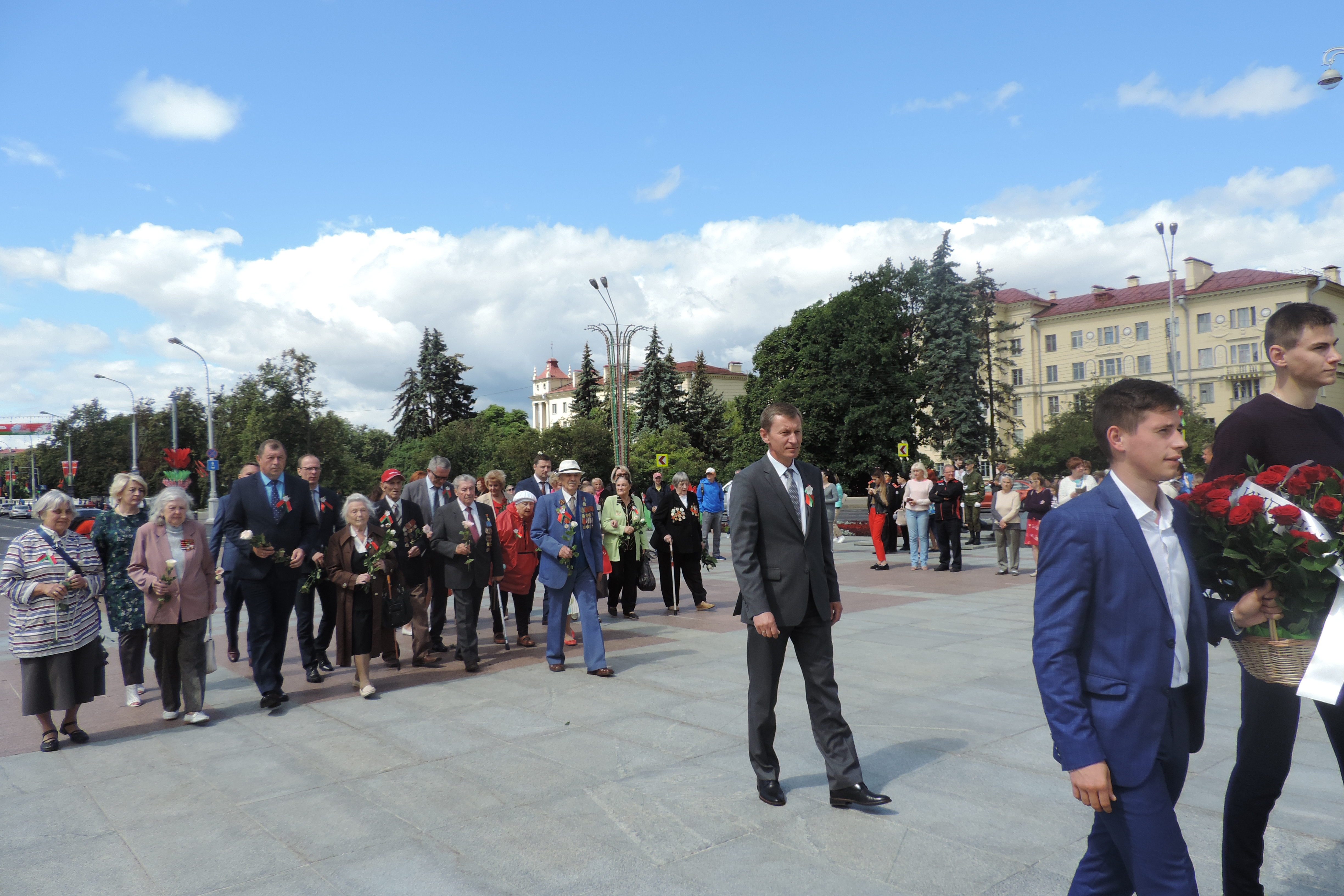 Глава администрации Партизанского района г.Минска Валерий Вороницкий, заместители главы и руководители структурных подразделений администрации, депутаты Минского городского Совета депутатов, представители ветеранских организаций 3 июля 2019 года приняли участие в торжественном возложении цветов к Монументу Победы на площади Победы.