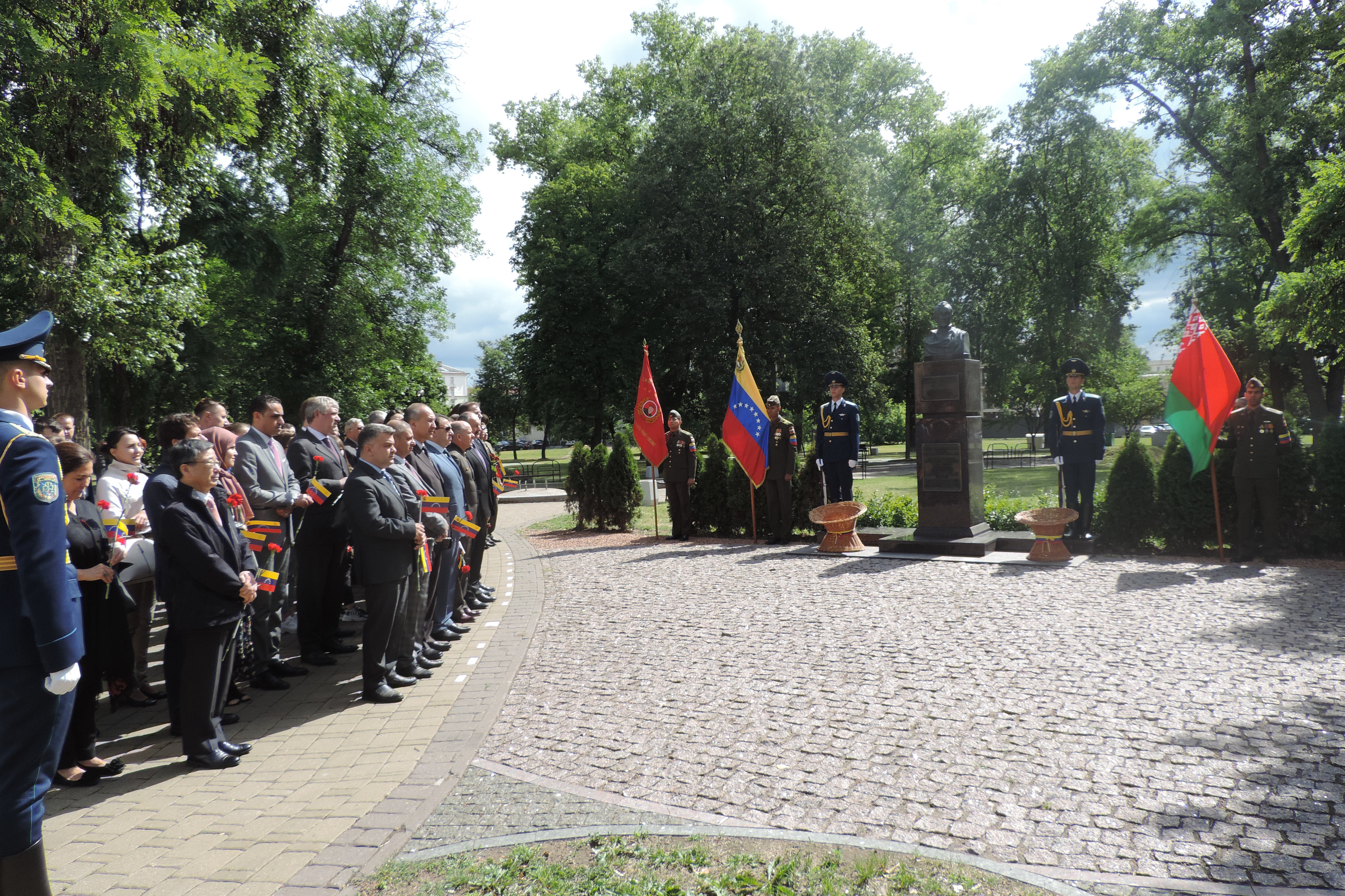 Уже на протяжении ряда лет посольство Боливарианской Республики Венесуэла в сквере Симона Боливара отмечает день провозглашения независимости своей республики. Не стал исключением и 2019 год – 9 июля в Симона Боливара с участием представителей дипломатического корпуса и военных атташе, аккредитованных в Республике Беларусь, сотрудников Министерства обороны Республики Беларусь, представителей администрации Партизанского района г.Минска, политических партий и общественных объединений прошли торжественные мероприятия по случаю 208-й годовщины провозглашения независимости республики. Участники церемонии возложили цветы к памятнику лидера Боливарианской Республики Венесуэла, вспомнили страницы истории развития данного государства, сказали много хороших слов о взаимном сотрудничестве между Республикой Беларусь и Боливарианской Республикой.