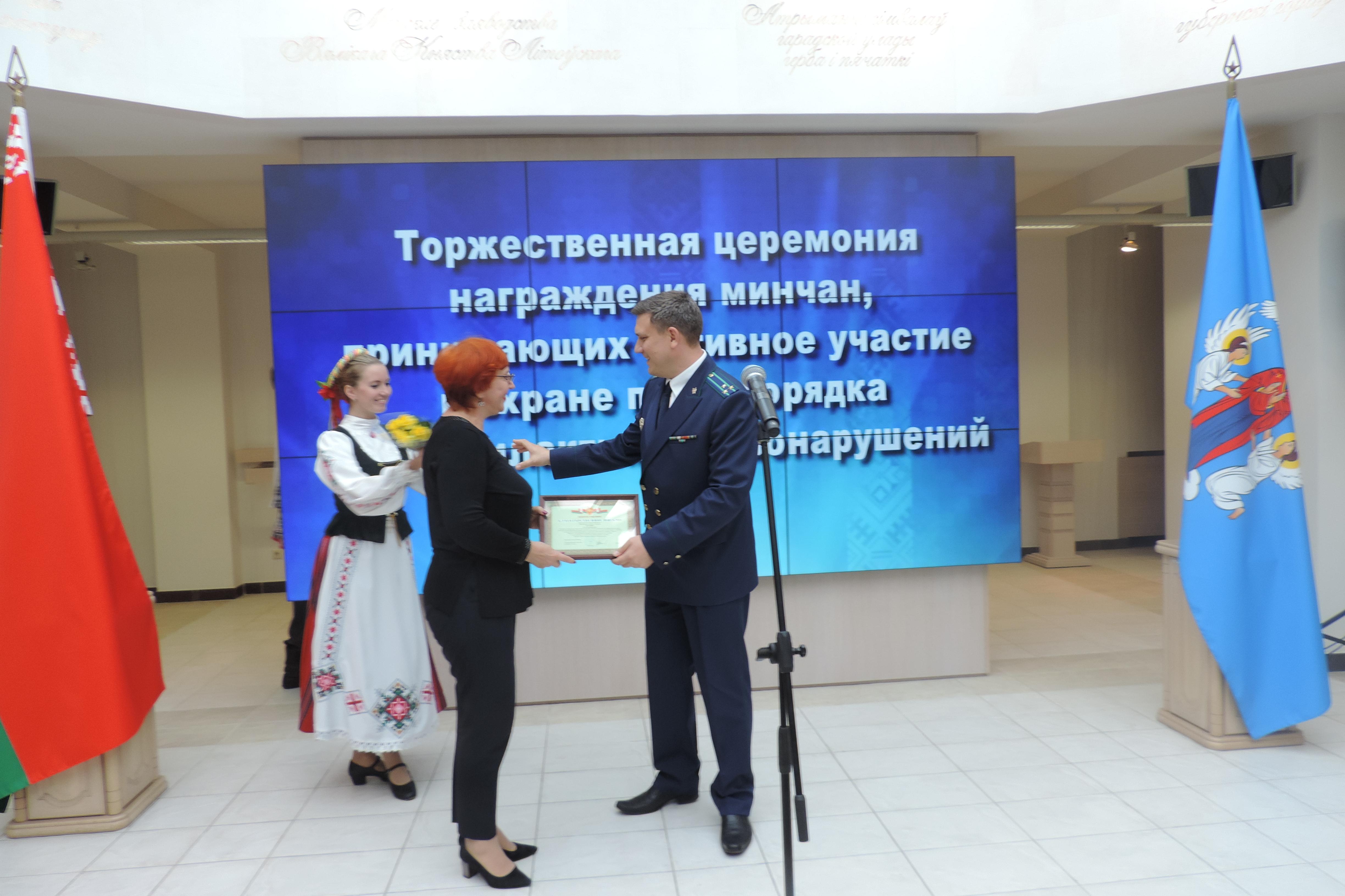 Торжественная церемония награждения минчан, активно участвующих в охране общественного порядка и профилактике правонарушений, прошла в городской ратуше 13 сентября 2019 г.