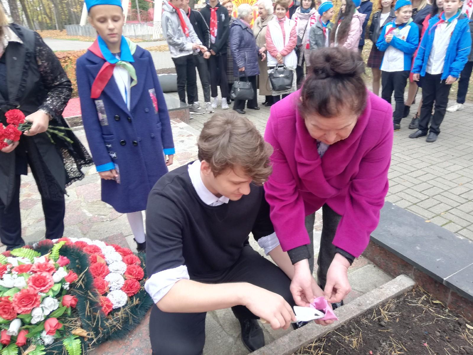 В рамках республиканской акции "Во славу общей Победы" в парке им.М.Горького состоялась торжественная церемония забора земли с захоронений погибших в 1920 году члена Реввоенсовета 16-й армии Анса Даумана и начальника политотдела 8-й Минской стрелковой дивизии Иосиф Флакса, а также бойца Красной армии Герасима Иванкова.