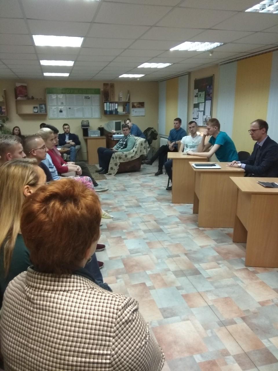 21.10.2019 состоялась встреча первого заместителя главы администрации Партизанского района г.Минска Капитана Дениса Викторовича с населением, проживающим в общежитии учреждения образования «Минский государственный профессионально-технический лицей № 14 деревообрабатывающего производства и транспортного обслуживания».