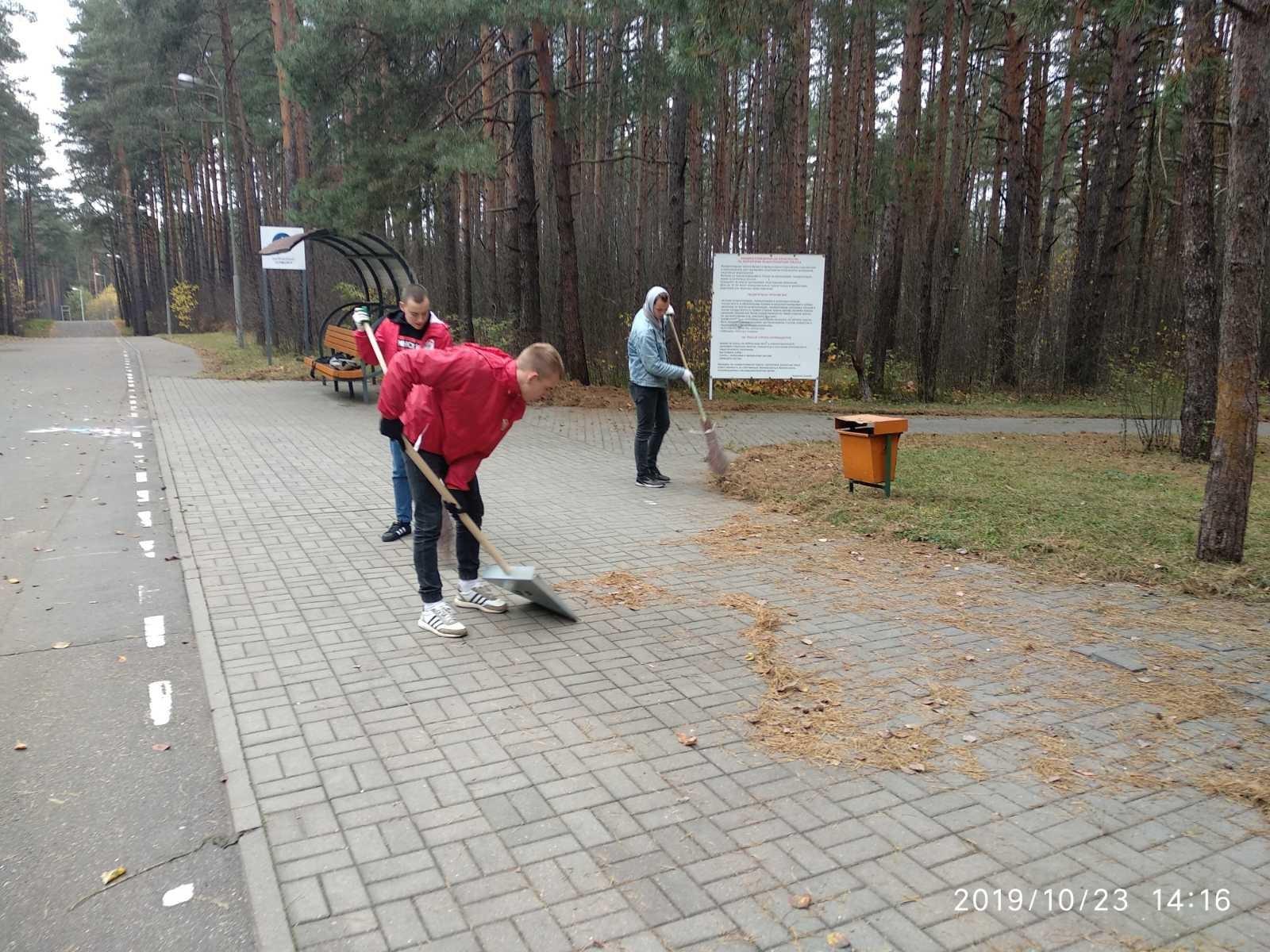 общественные объединение: Партизанский районный комитет ОО «БРСМ» (наведение порядка и уборка листвы на территории лыжероллерной трассы).
