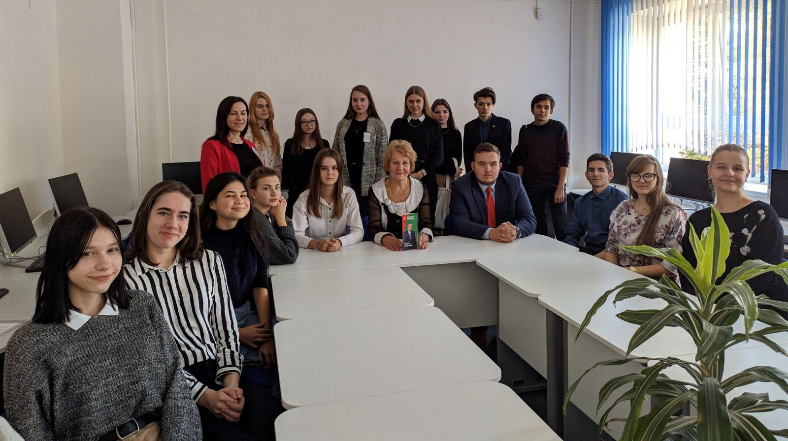 В средней школе №108 депутат Минского городского Совета депутатов Никонов Роман Викторович рассказал о том, как он стал депутатом, графике своей работы, об общественной нагрузке и подарил школьной библиотеке цикл книг «Фонд мира».