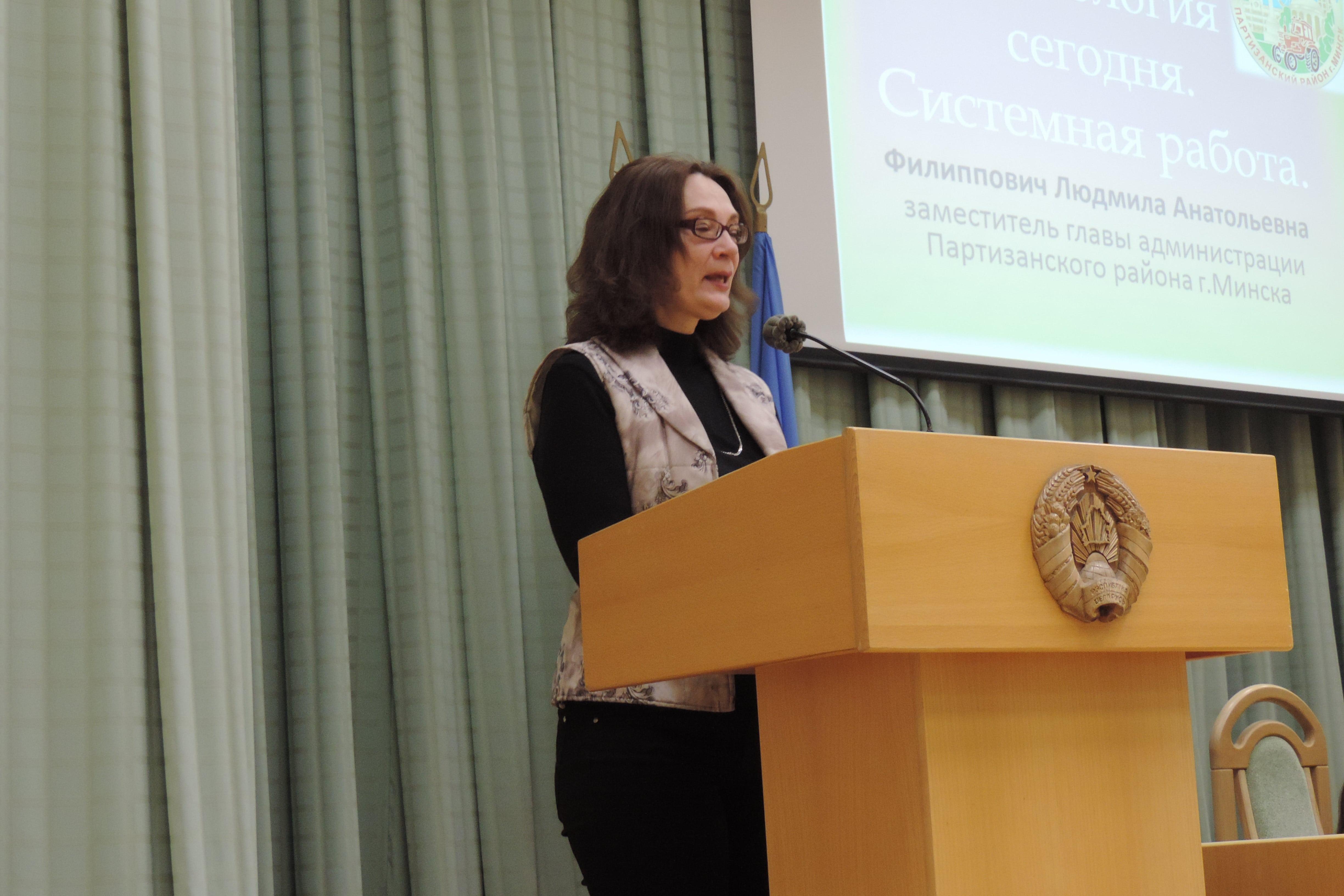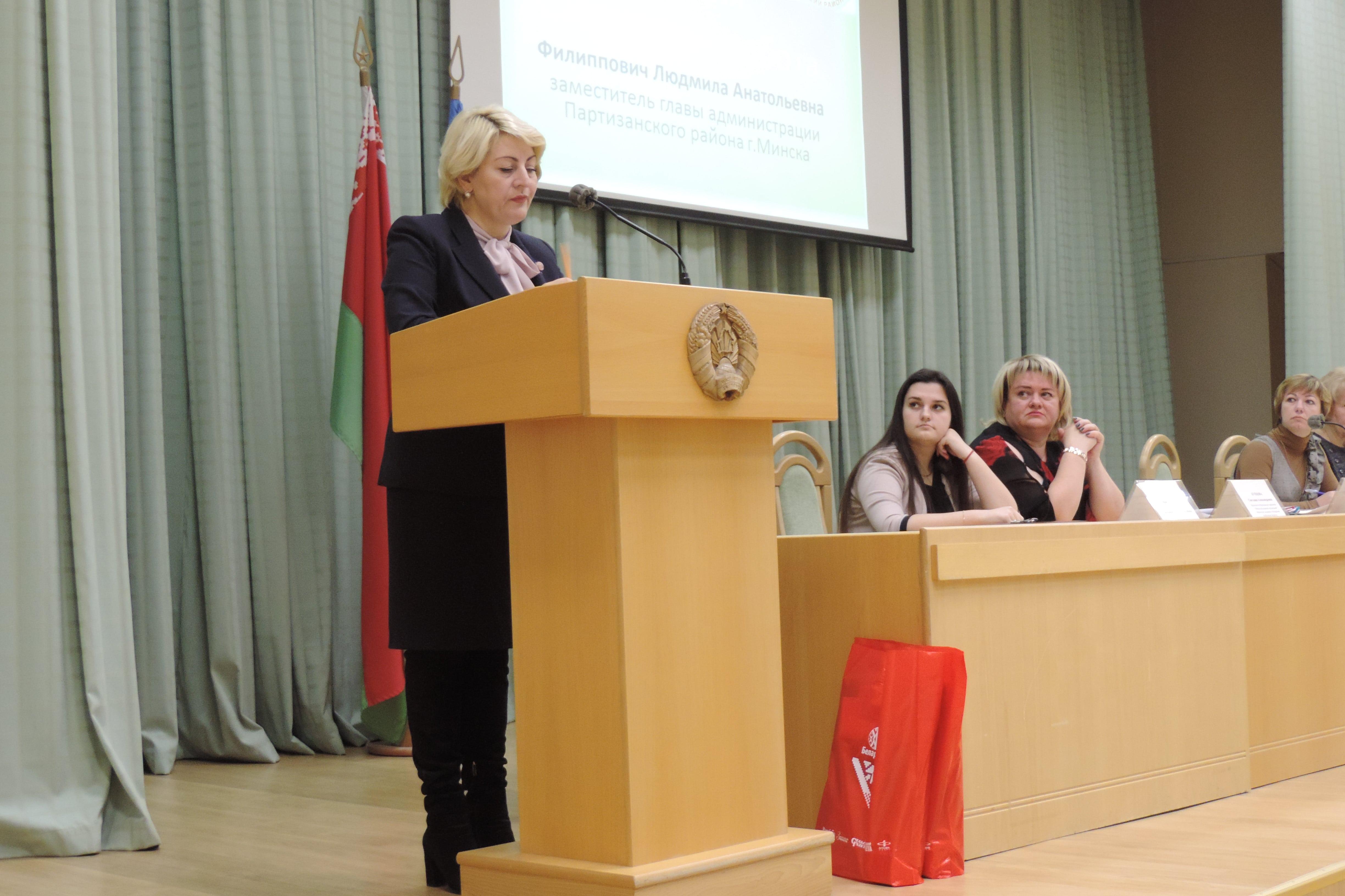В мероприятии приняли участие заместитель главы администрации Партизанского района г. Минска Филиппович Людмила Анатольевна, которая затронула актуальные вопросы идеологической работы, проводимой на территории Партизанского района целиком, внутри трудовых коллективов предприятий, организаций. Обсуждались механизмы функционирования идеологии, идеологические процессы, компетенции идеолога.