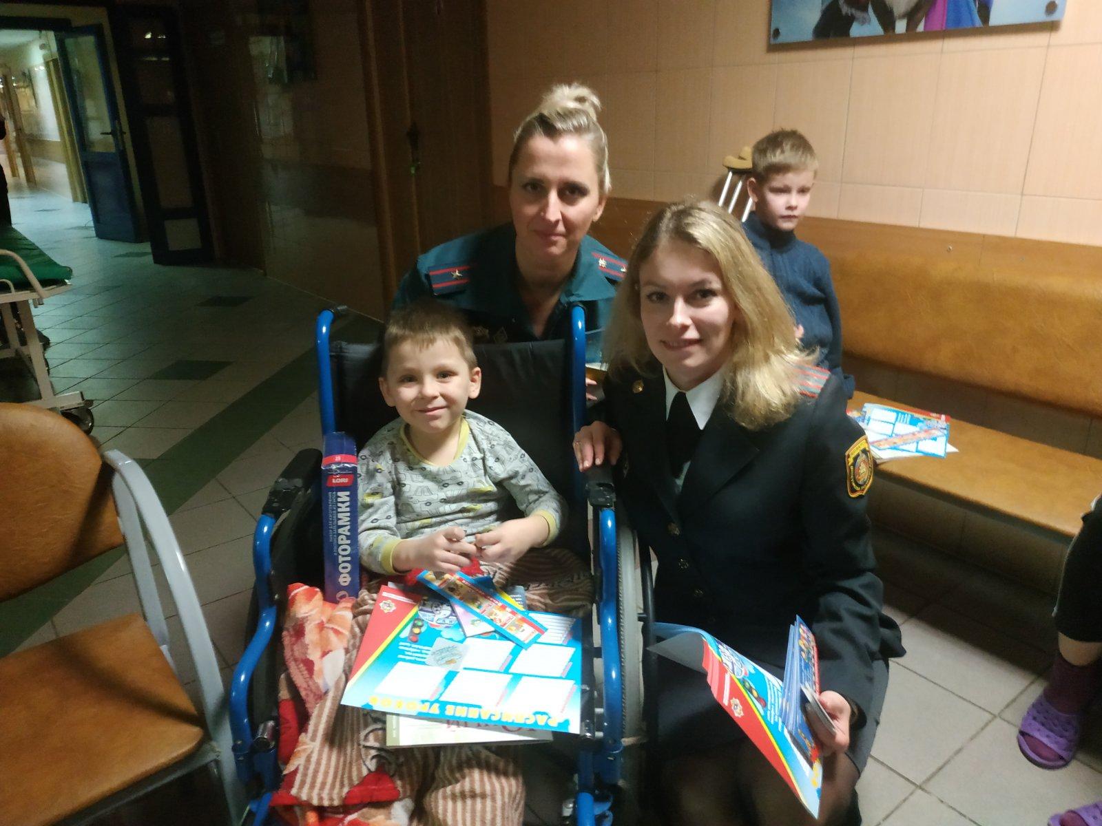 Сотрудники ГАИ, РОЧС Партизанского района столицы и представители организации Белорусского Общества Красного Креста навестили детей в травматолого-ортопедическом отделении 6 городской больницы.