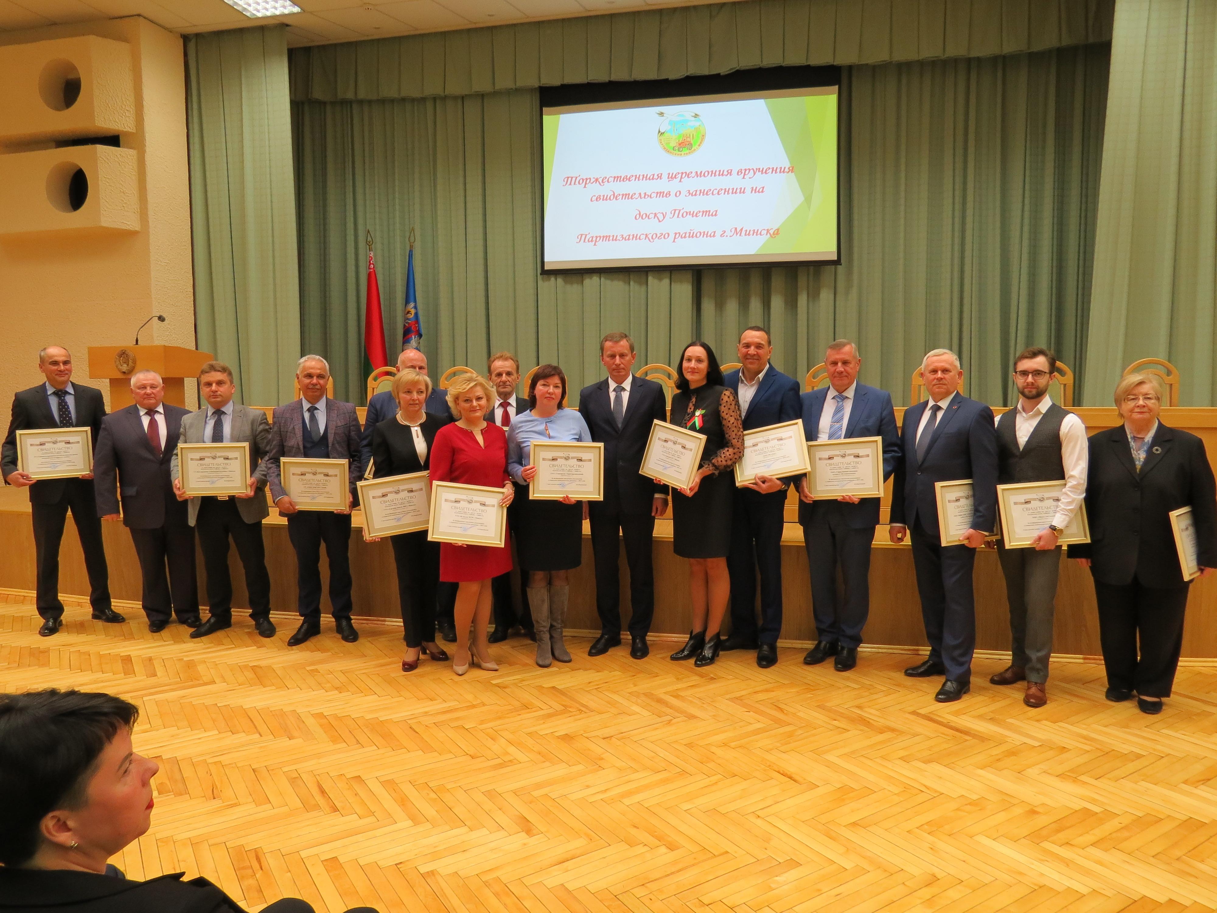В администрации Партизанского района г.Минска состоялась торжественная церемония вручения свидетельств о внесении на доску Почета Партизанского района г.Минска.