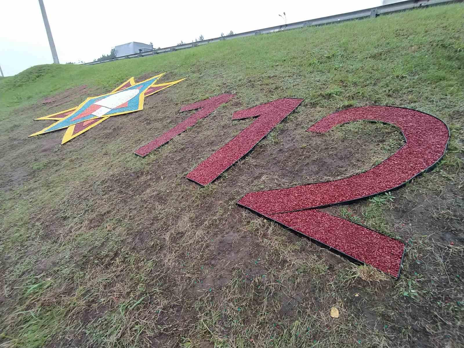 Несмотря на погодные условия, работа по созданию ландшафтного дизайна в тематике МЧС была завершена в намеченный срок. И сейчас водитель каждого автомобиля и его пассажиры, которые выезжают из города по улице Ваупшасова, не могут не обратить внимание на яркую эмблему и телефоны МЧС.