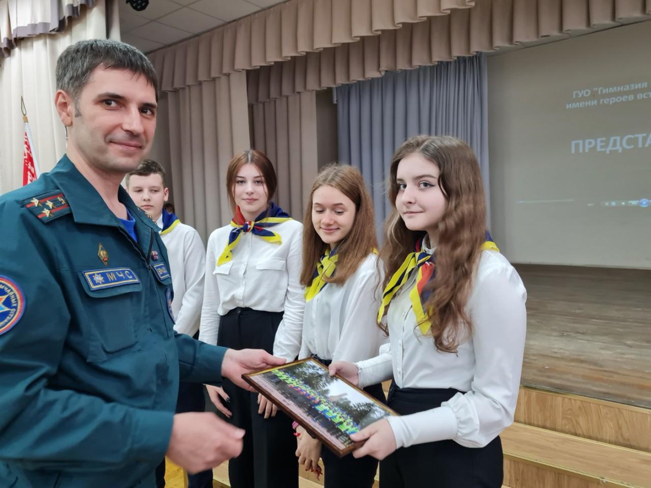 Александр Бернадский отметил важность передачи из поколения в поколение памяти о Великой Отечественной войне, поблагодарил активистов БМООСП из числа учащихся гимназии, которые приняли участие в велопробеге, приуроченном 76-ой годовщине Победы в Великой Отечественной войне в рамках акции «Беларусь помнит. Помним каждого». Он вручил ребятам памятные фотографии с личной подписью и словами поздравления Министра по чрезвычайным ситуациям Республики Беларусь Вадима Синявского: «С праздником Великой Победы!».