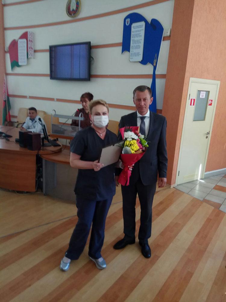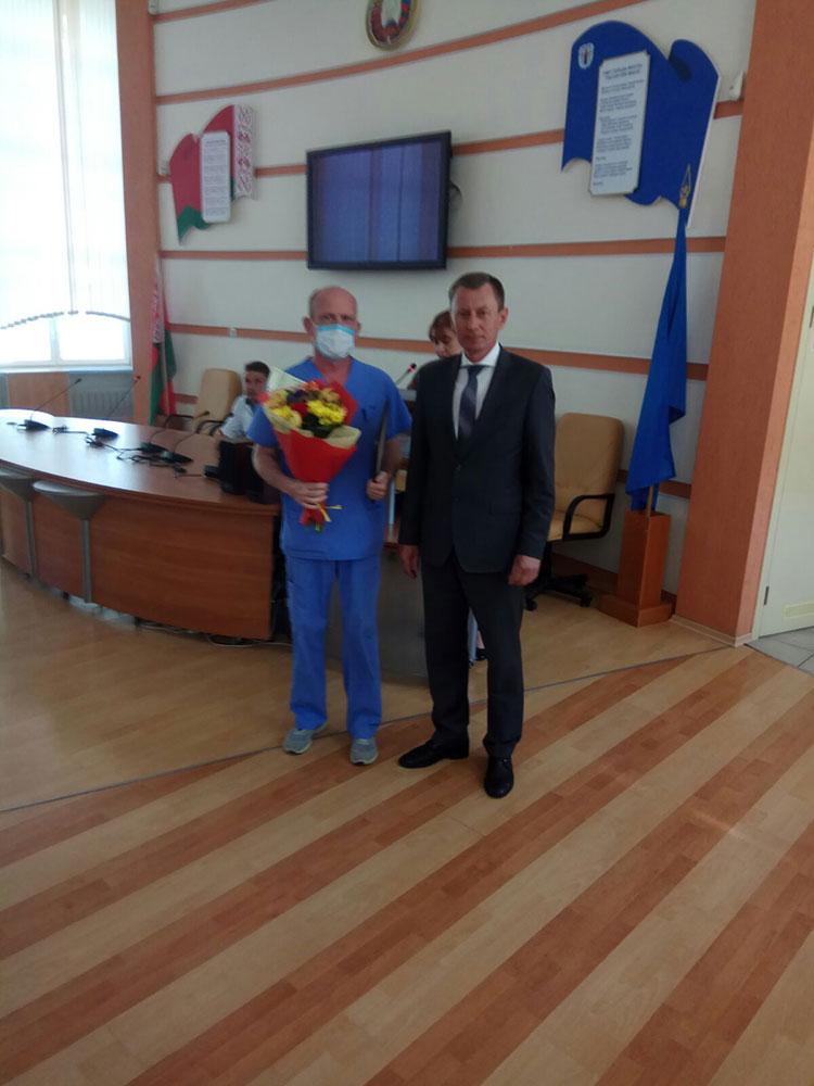 Вручил почетные грамоты и подарки. Торжественные мероприятия прошли в Уз"Городская станция скорой медицинской помощи", УЗ "6я городская клиническая больница", РНПЦ неврологии и нейрохирургии, 14я районная центральная поликлиника.