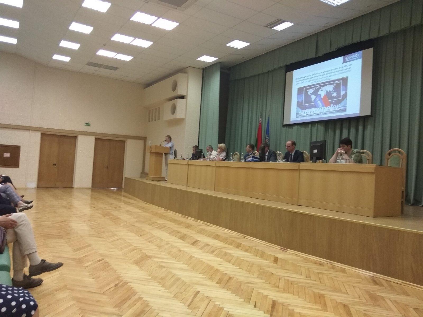 С основным докладом выступила заместитель главы администрации Филиппович Людмила Анатольевна. В содокладах приняли участие заместитель генерального директора ОАО МЭТЗ, ОАО ММЗ, УО МГЛУ
