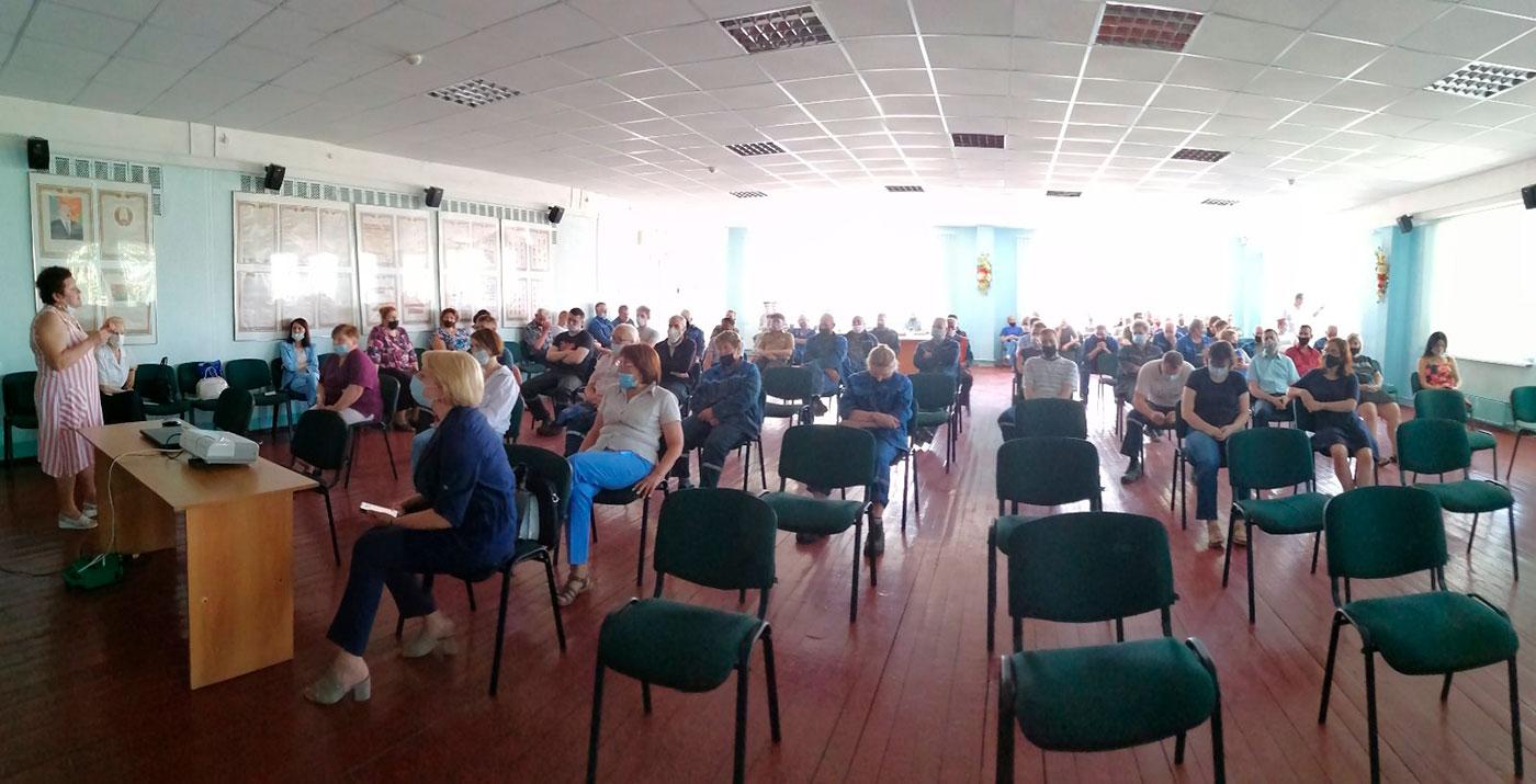 Выступающие провели профилактическую беседу с работниками филиала на тему: «Вакцинация от Covid-19». Во время беседы были разъяснены: основные понятия о вакцинации, порядок, общие требования к вакцинации, показания и противопоказания, условия проведения вакцинации. Встреча проходила в актовом зале филиала, с соблюдением санитарных норм и правил, связанных с профилактикой распространения коронавирусной инфекции. В заключении встречи, Людмила Анатольевна рекомендовала всем работникам привиться.