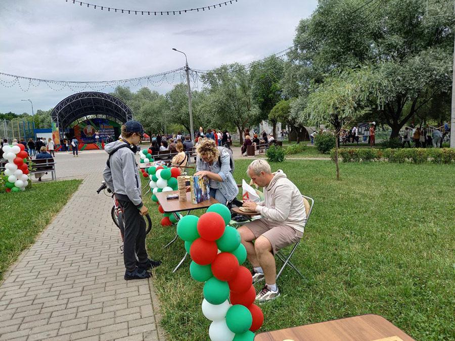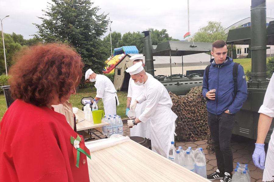 С утра делегация администрации Партизанского района г. Минска, представители предприятий и организаций приняли участие в торжественной церемонии возложения цветов к монументу Победы. В центральном детском парке им. М. Горького, парке экстремальных видов спорта развернулись тематические программы, которые включали в себя выступления творческих коллективов района, артистов белорусской эстрады, интерактивные зоны для детей и взрослых, выставку военной техники, всех желающих угощали солдатской кашей.